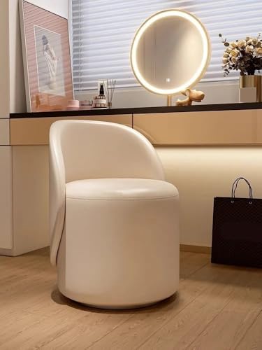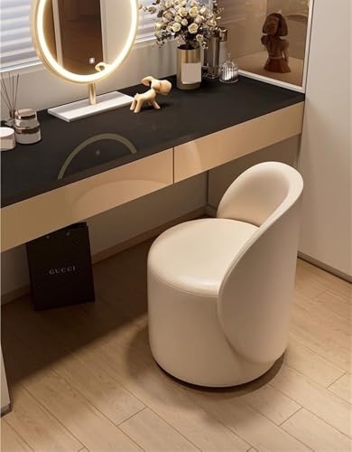 PU Leather Upholstered Dressing Stool, Vanity Stool with 360° Rotatable Base, Wood Frame Vanity Chair, Round Ottoman Foot Stool for Bedroom, Living Room, Entryway, Offices(Brown)