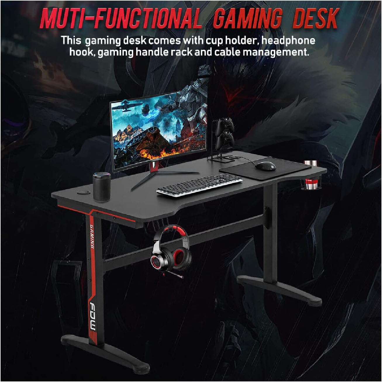 Gaming Desk, 47 inch Computer Desk Gaming with USB Gaming Handle Rack&Full Desk Mouse Pad, T-Shaped Desk Cheap, Gamer Tables with Cup Holder&Headphone Hook.