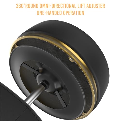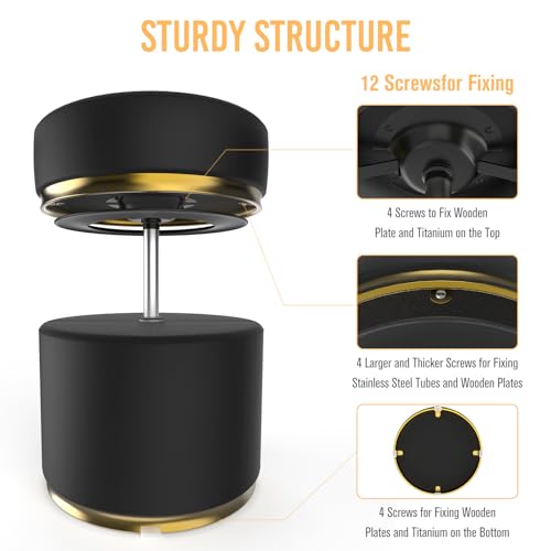 pouseayar Round Swivel Stool, PU Leather 660LBS Load, 360° Adjustable Height Vanity Stool for Makeup Chair, Massage Table Stool, Living Room, Bedroom, Modern Round Ottoman and More, Black