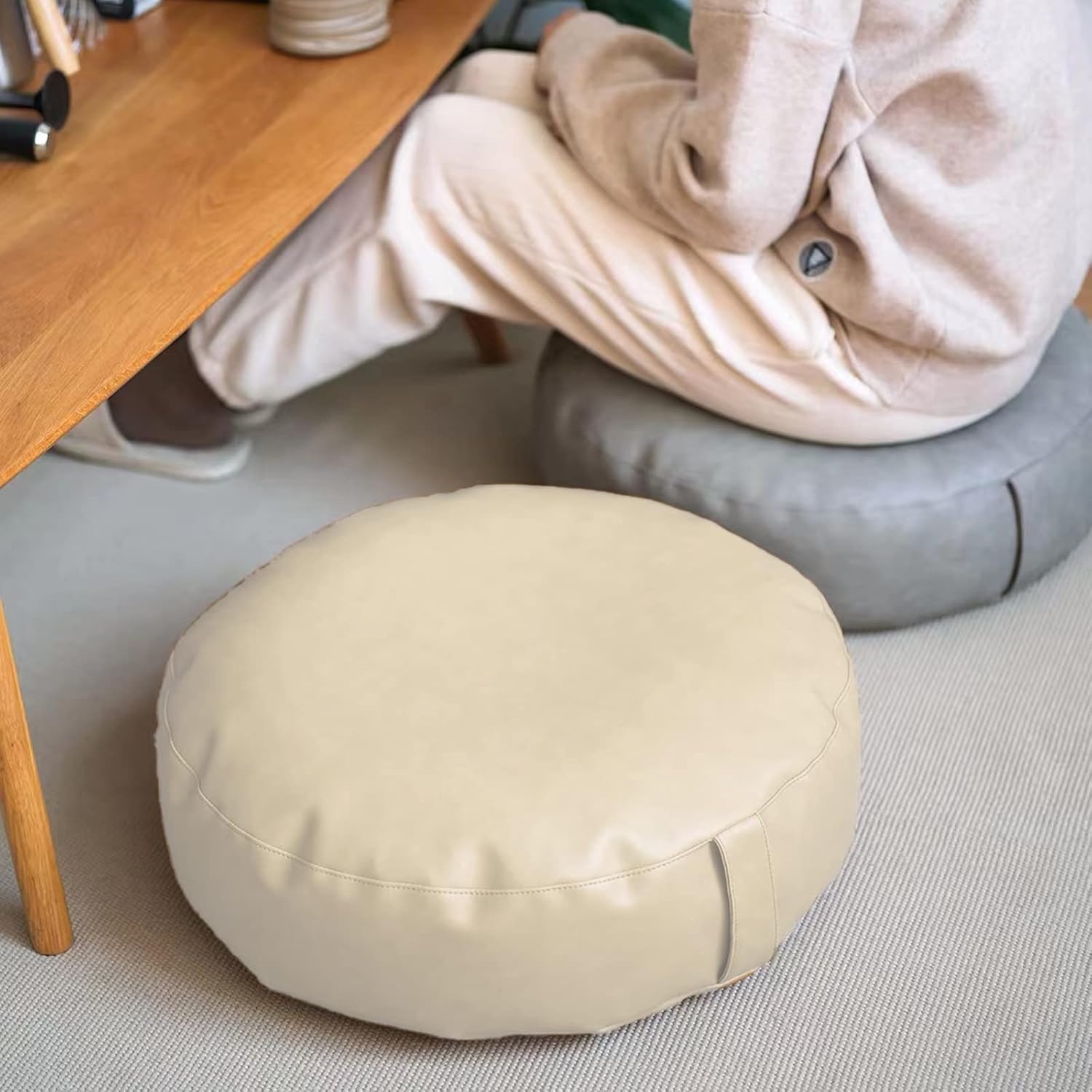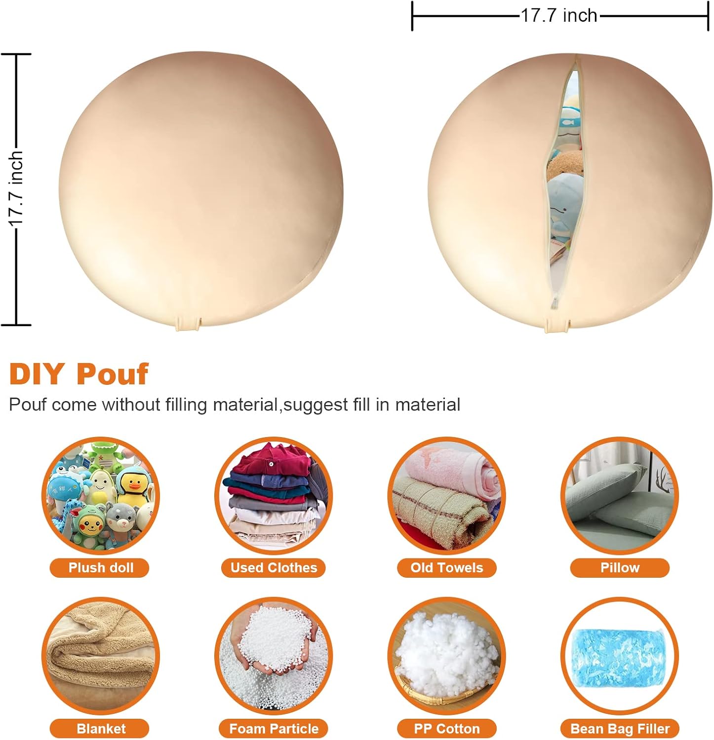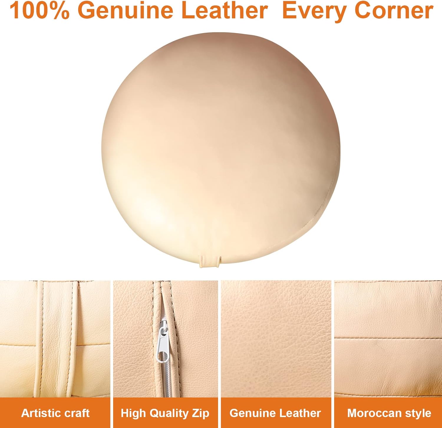 Louis Donné Unstuffed Ottoman Pouf Cover, Genuine Leather Pouf Ottoman Cow Cover, 17.7" Color Yellow Round Boho Pouf Ottoman with 100% Genuine Leather, Poufs for Lving Roo
