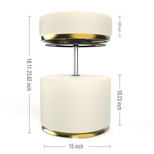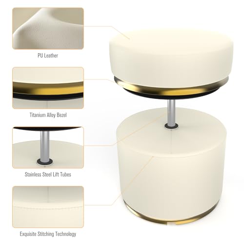 Round Swivel Ottoman 660lbs Load, PU Leather Makeup Vanity Stool, 360° Adjustable Height Vanity Chair for Makeup Room, Bedroom, Living Room, Modern Circle Ottoman, Massage Table Stool