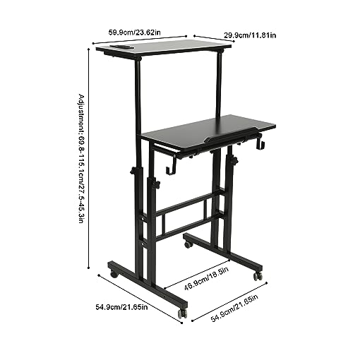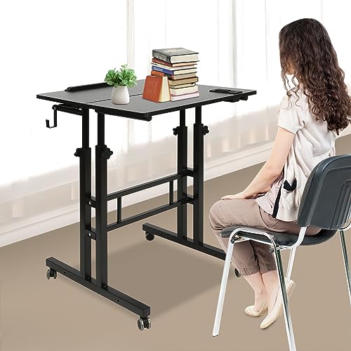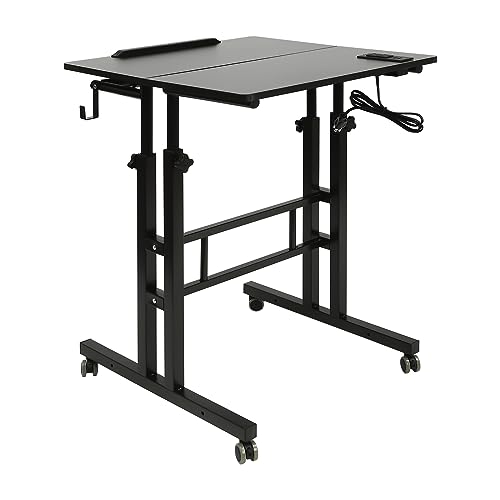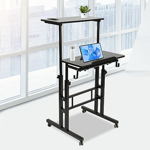 Adjustable Standing Desk with USB Ports and Power Outlets, Stand Up Desk with Storage Mobile Rolling Computer Desk Portable Laptop Table with Wheels for Home Office, Oak