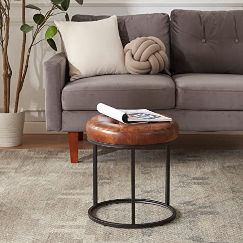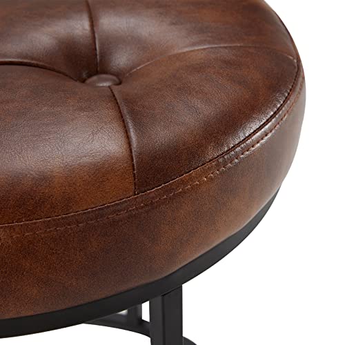 DUHOME Faux Leather Ottoman Stool, Vanity Chair Button Tufted Footrest Stool Makeup Stool with Metal Base for Living Room Bedroom, Dark Brown