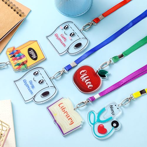 6 Sets Acrylic Hall Pass Lanyards Unbreakable School Passes Set for Teachers Cute Classroom Passes for Bathroom, Library, Office and Nurse Classroom School Supplies Gifts (Cute)
