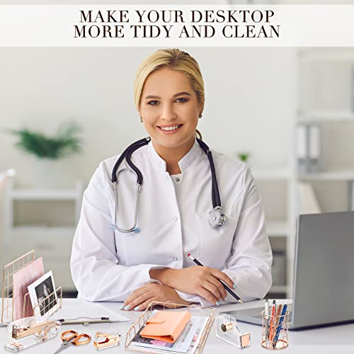 Yaomiao 13 Pcs Desk Accessories Kit Organizer Office Supplies Women Gift Set Acrylic Stapler Staple Remover Tape Holder Pen Cup Magazine File Letter Sorter Note Clip Phone Holder Scissor(Gold)