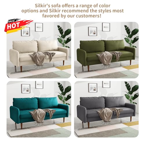 Mid-Century Modern Small Spaces Comfy Velvet Living Room,Office,and Apartment,Loveseat Couch Sofas, 70 Inch, Aqua Turquoise