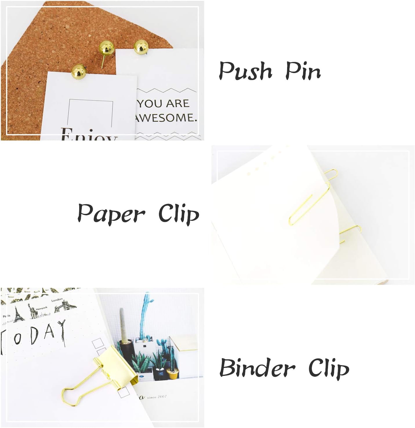 Gold Binder Paper Clips Set,182pcs large Paper clips,Binder clips,Push pins, Office Supplies Clips for women,Desk Accessory