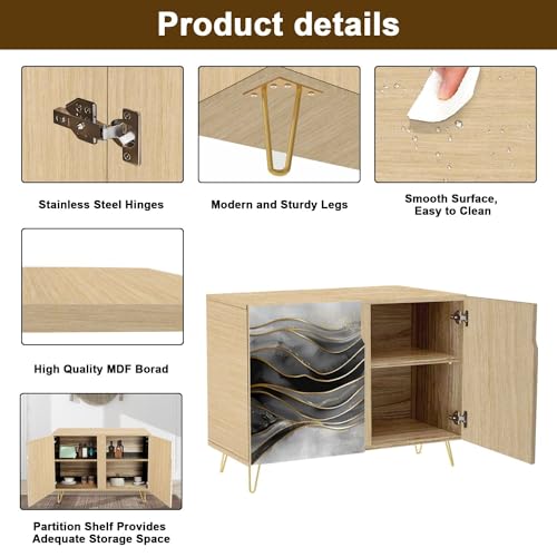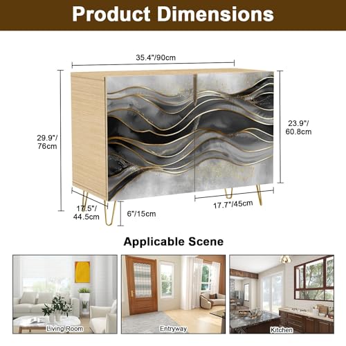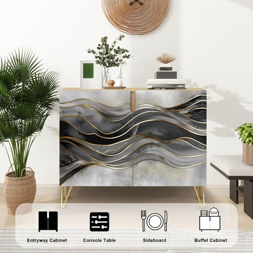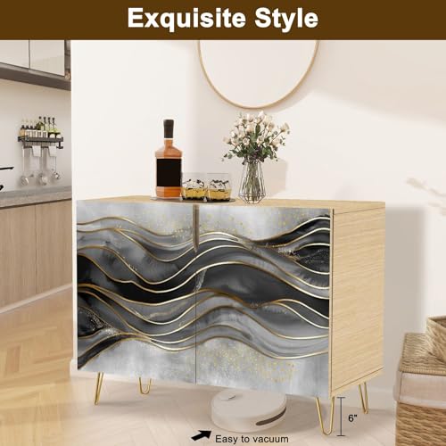 Mid Century Sideboard Buffet Kitchen Storage Cabinet with 2 Doors Pastel cyan mint liquid marble watercolor white lines brush stains Cupboard Console Table Bar Cabinet for Dining Room Hallway