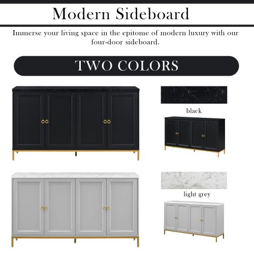 Modern Sideboard Buffet Cabinet with Faux Marble Top, Kitchen Storage Cabinet with Metal Handles and Support Legs, Wood Coffee Bar Cabinet Entryway Cabinet for Living Room, Black