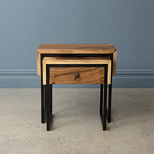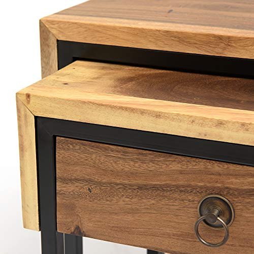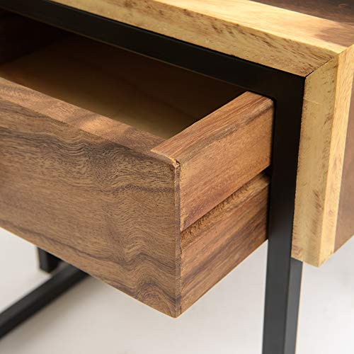 Best Home Fashion Petrified Teak Side Table with Stainless Steel Base - Medium - 14” L x 14” W x 24” H