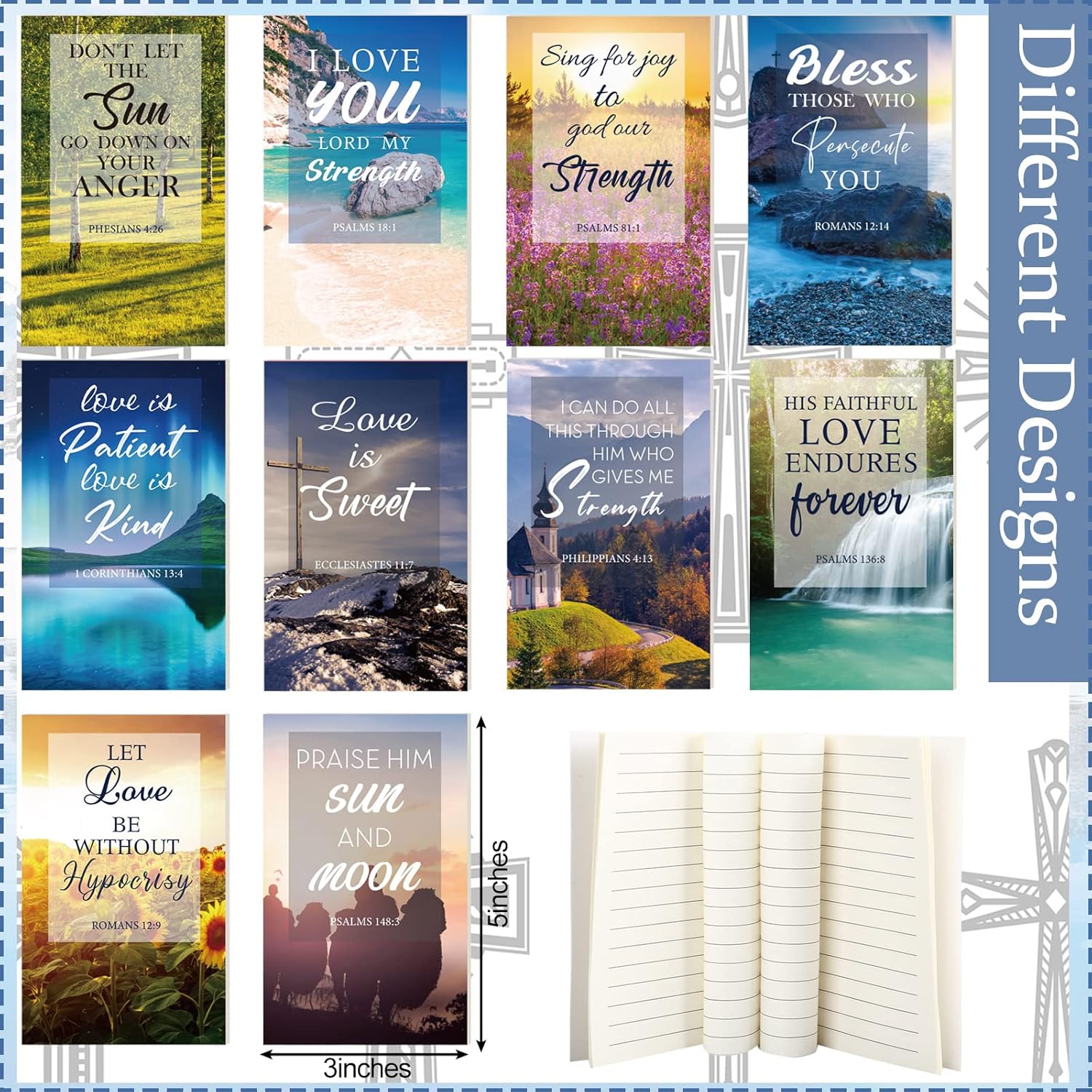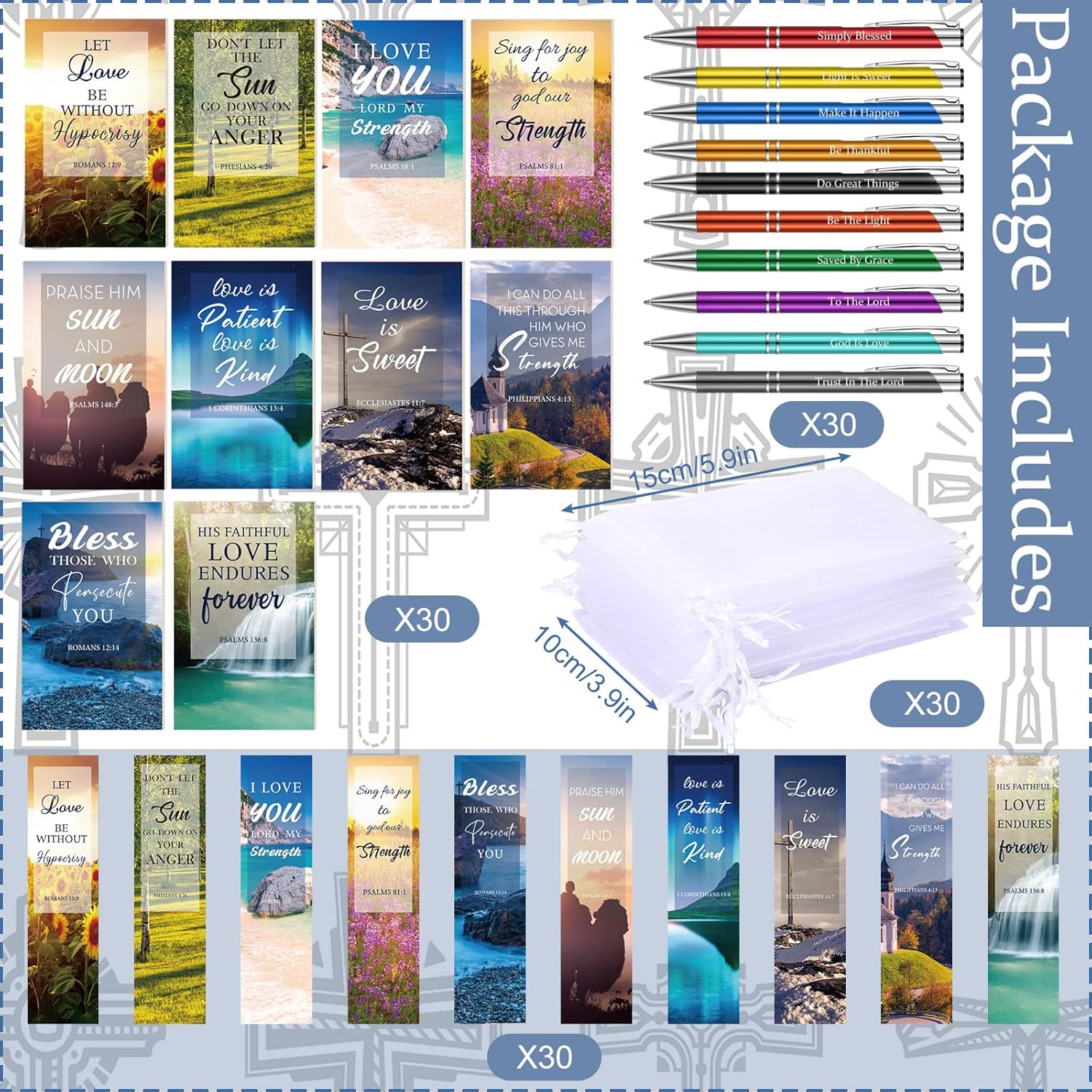 120 Pcs Bible Gifts Set Include 30 Bible Verses Bookmarks Christian Book Markers 30 Scripture Ballpoint Pens 30 Christian Notebooks 30 White Organza Bags for Women Men School Office Church (Modern)
