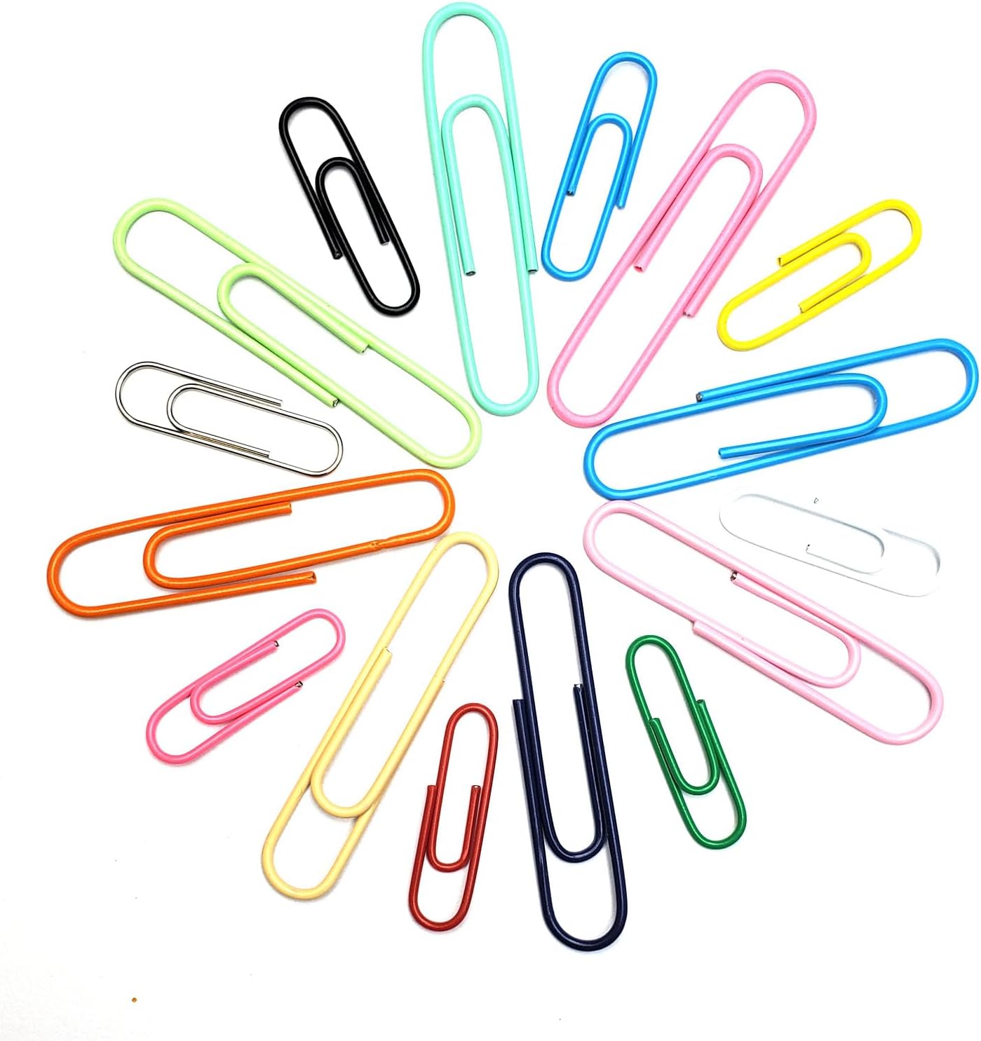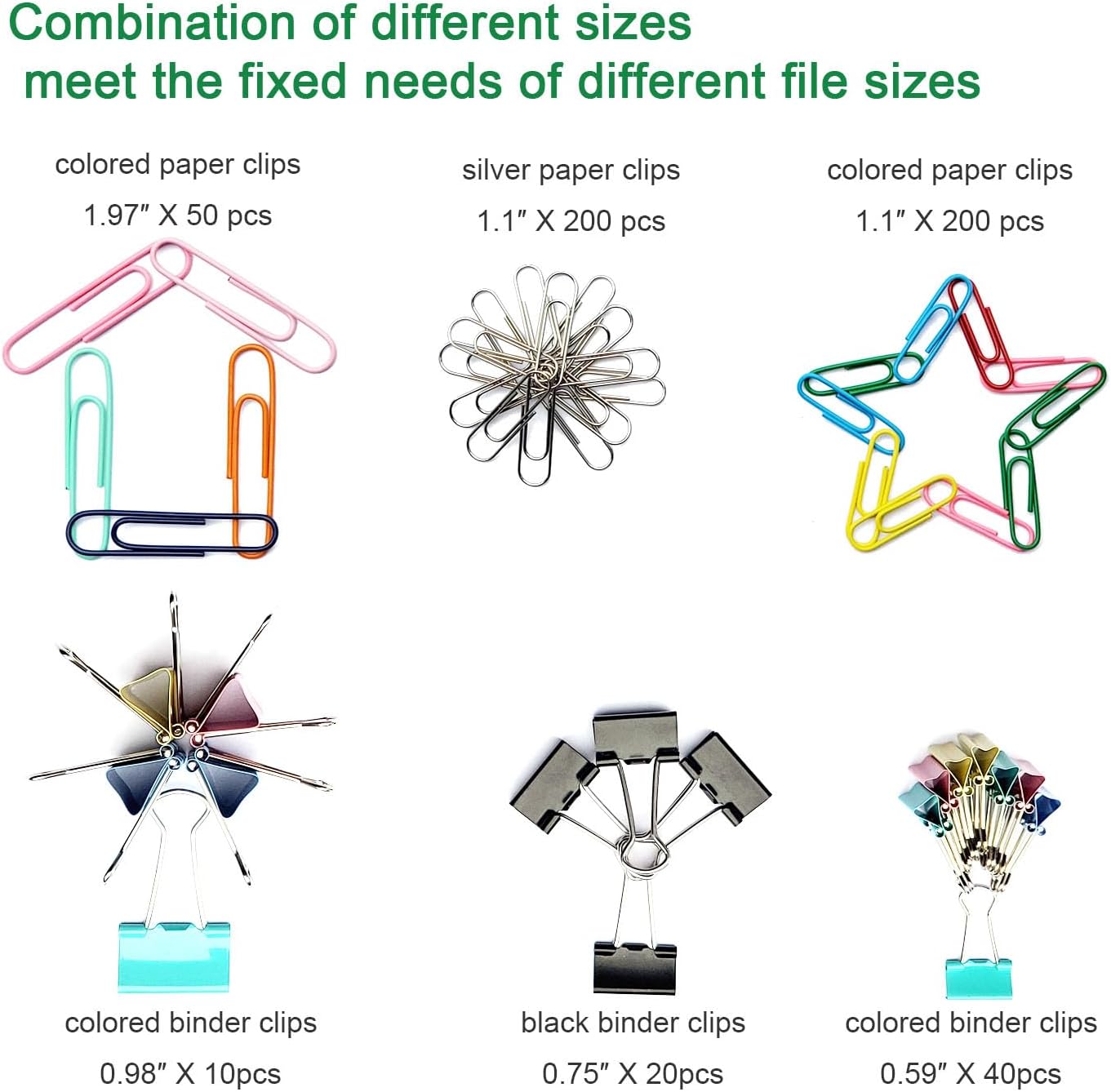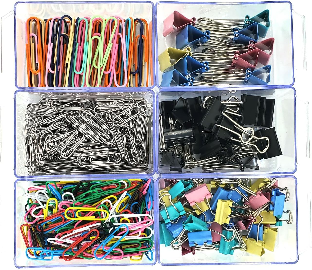 SYFASHRAN Set of 520 paper clips in various sizes and colors in a 6-compartment drawer paper clip holder. Ideal for office, home, school, small, large