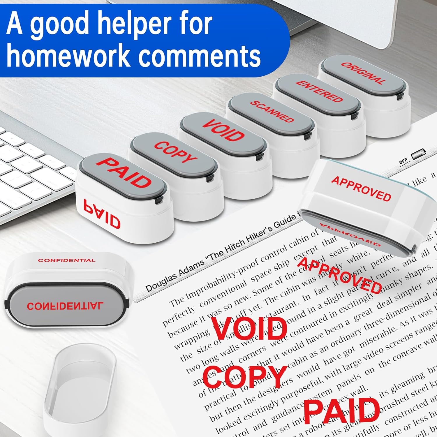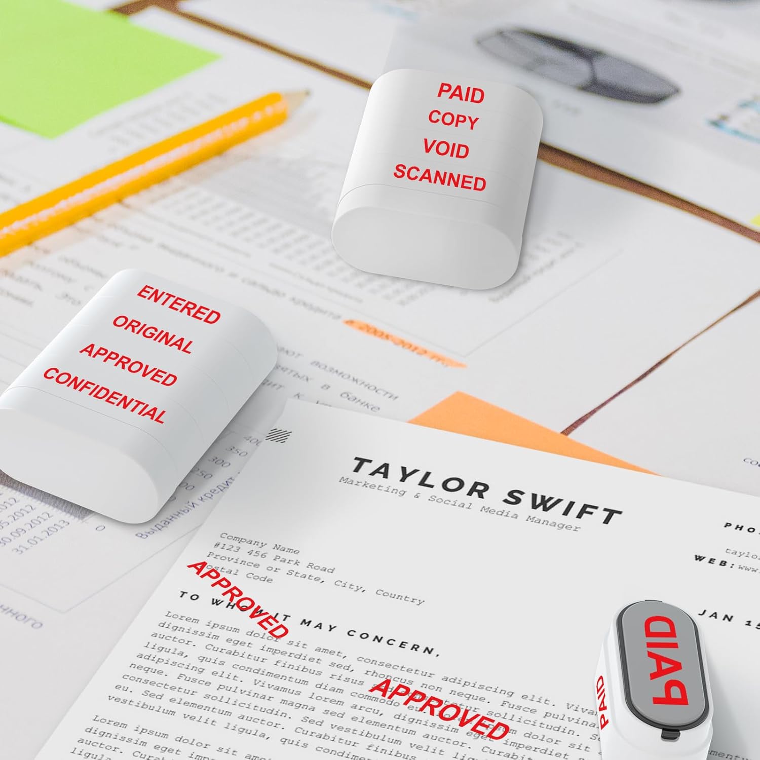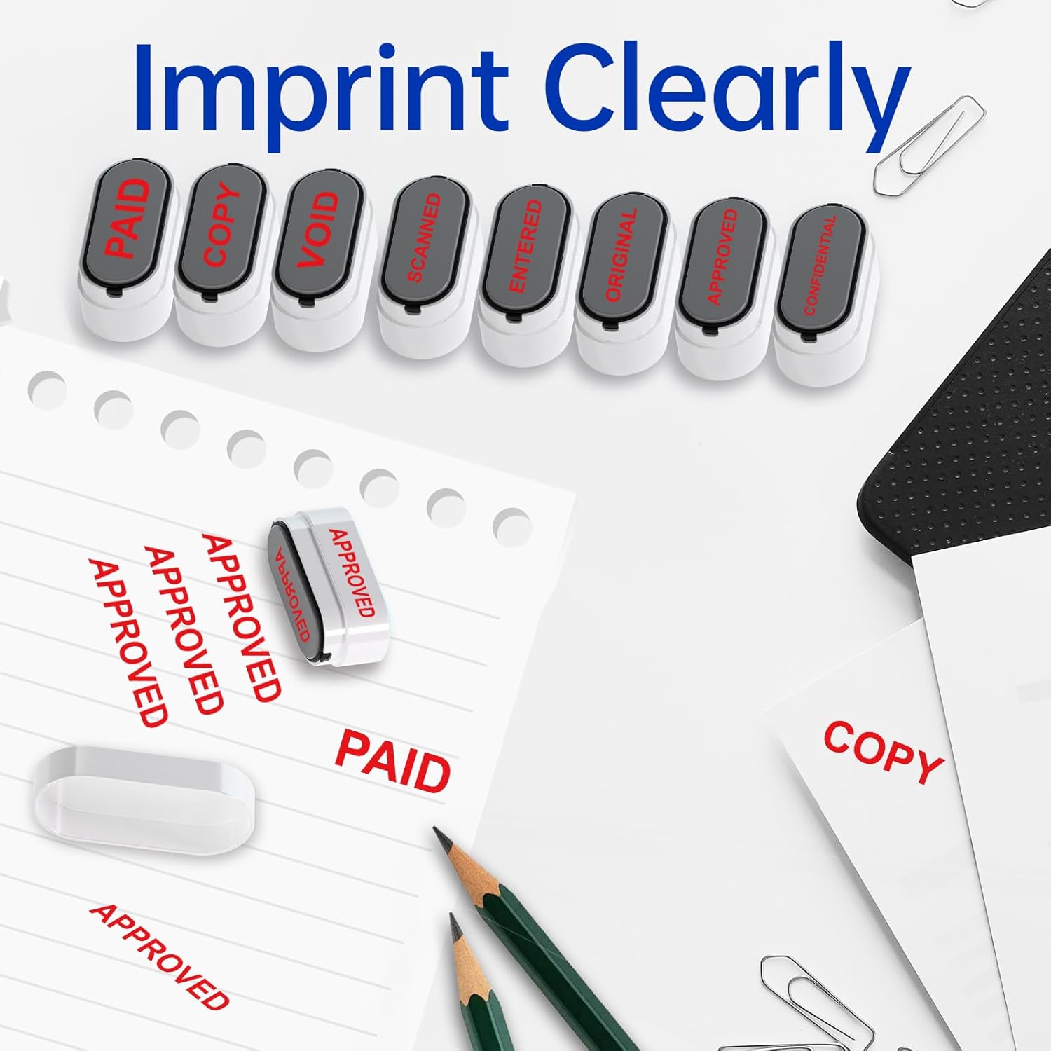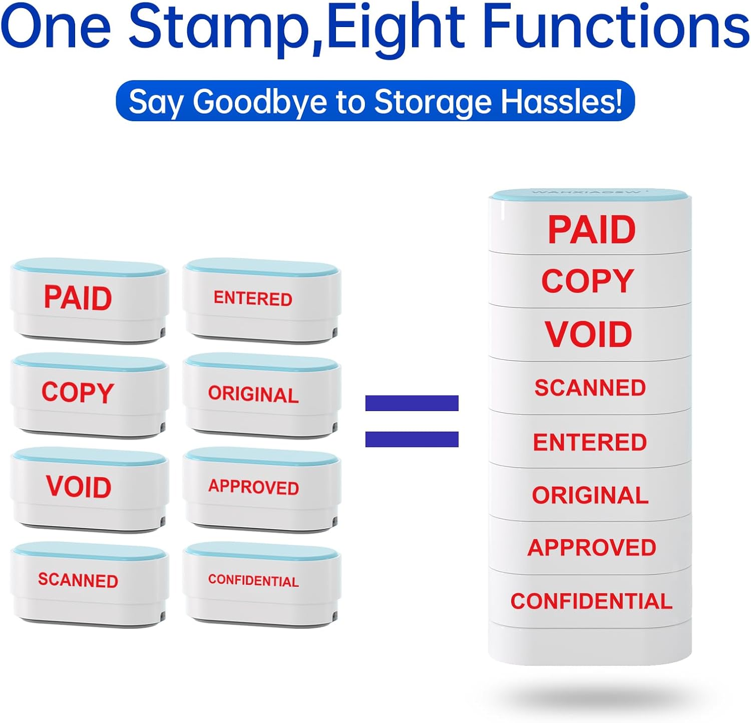 8-in-1 Office Stamps - Portable and Space-Saving Rubber Business Stamp Set for Approved Paid Completed Copy Faxed Scanned Stamps (Office Stamp)