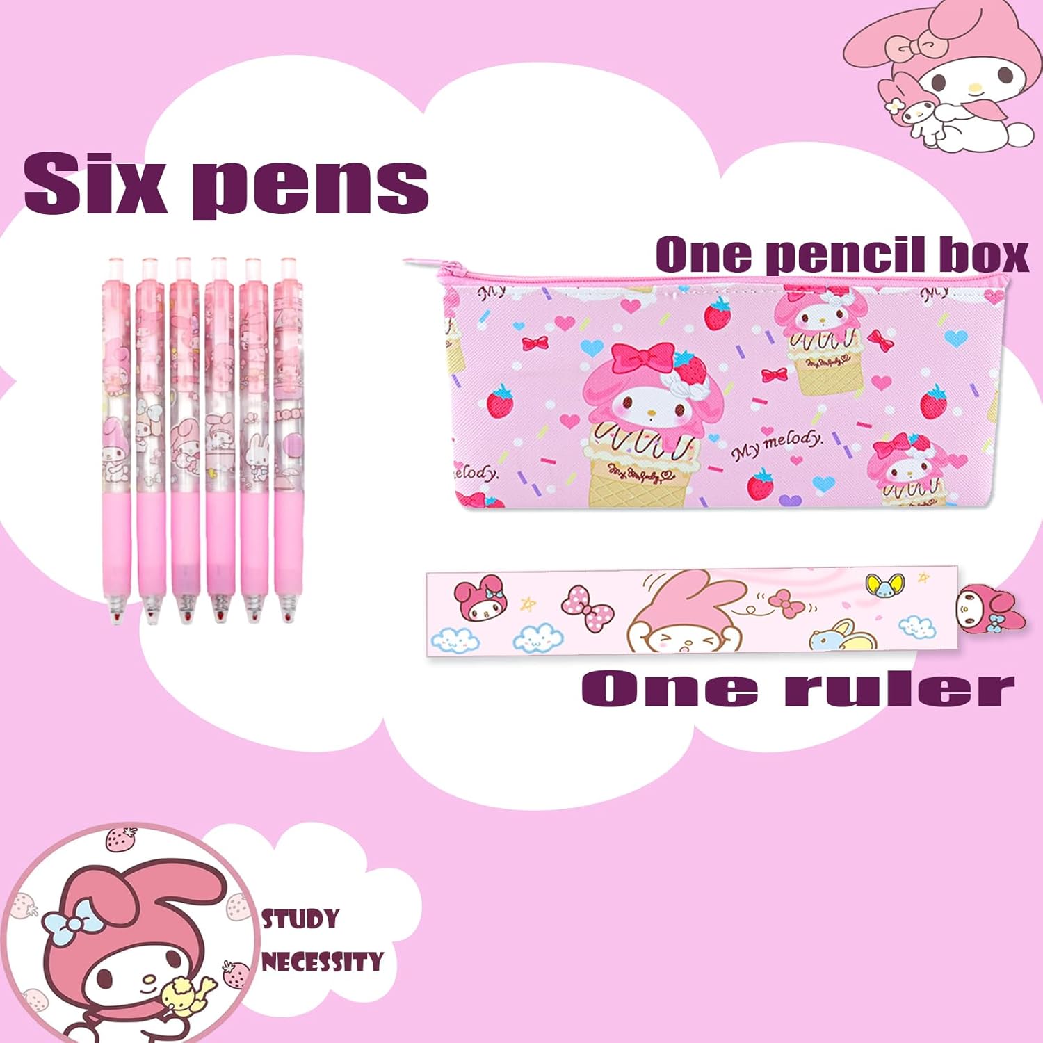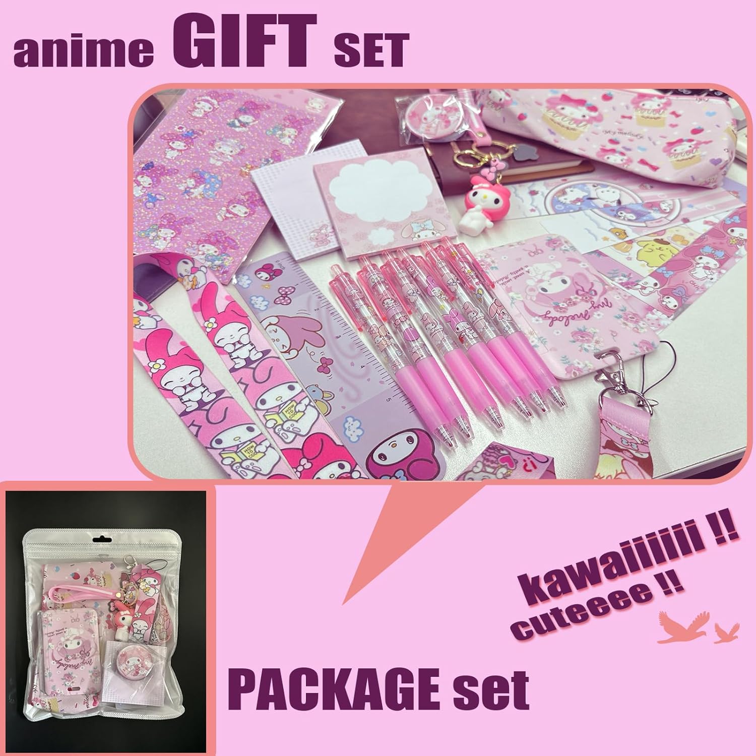 Kawaii Stuff Gift Set Office Supplies Including Cute Stickers, Keychain,Special Button Pins,Sticky Notes,Small Bag,Cute Gel Pens,Unique Bookmarks,Card Holder, Pink