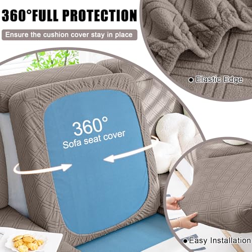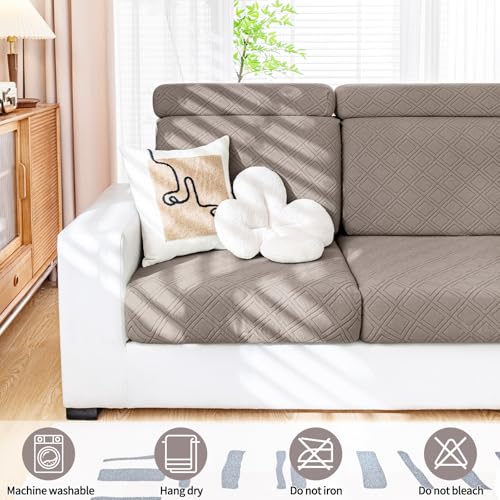 smiry Waterproof Couch Cushion Covers, Stretch Sectional Couch Covers, Soft L Shape Sofa Covers Washable, Magic Chaise Lounge Cover Elastic Furniture Protector for Pets, Kids (Chaise Cover, Camel)