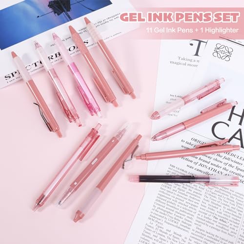 Tetragonal tree- 12Pcs Gel Pens Set, 11Pcs Black Ink Pens and 1Pcs Highlighter, Retractable 0.5mm Fine Point Cute Note Taking Pens for Office School (Navy bluen)