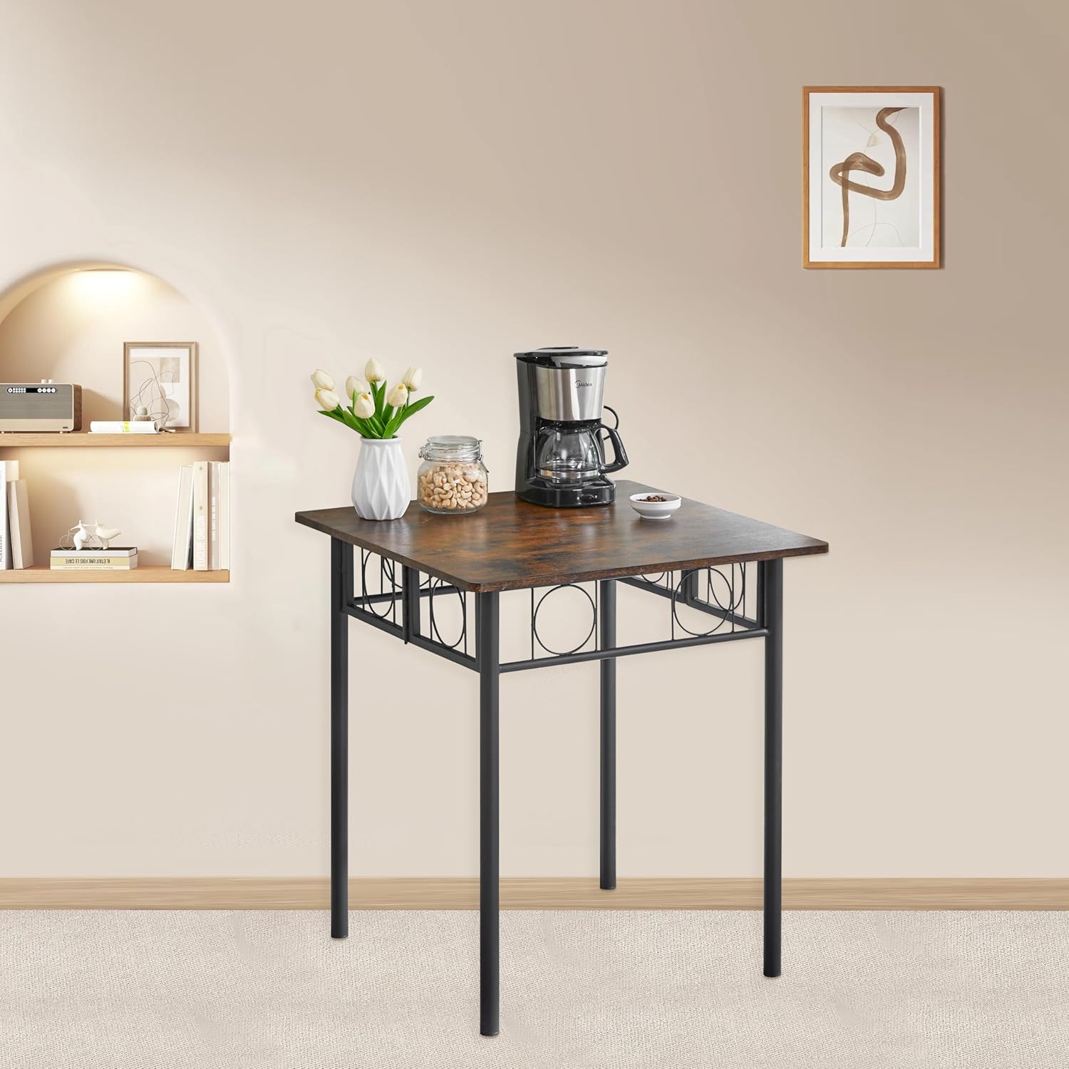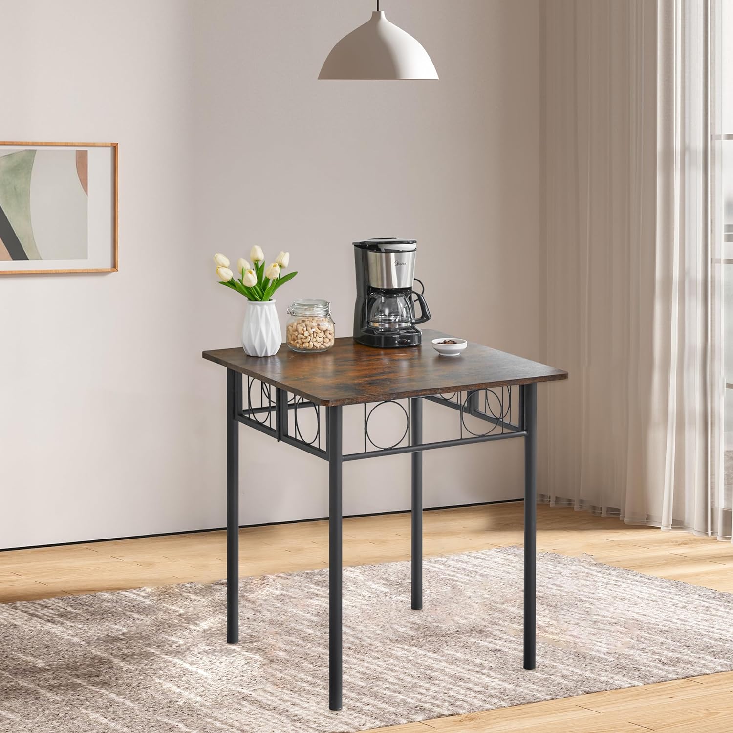 Folding Dining Table for 4 People, Dining Table with Removable Panels, no Installation Required, Kitchen Dining Table for Small Spaces (Brown) Metal Legs