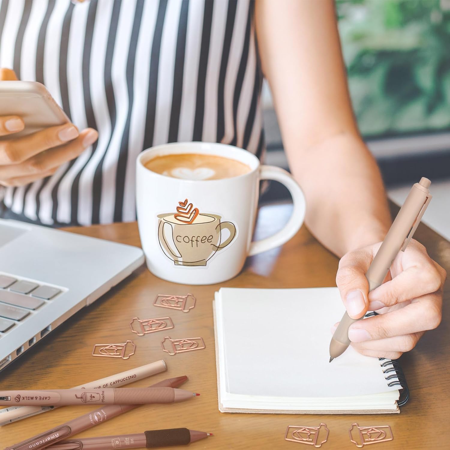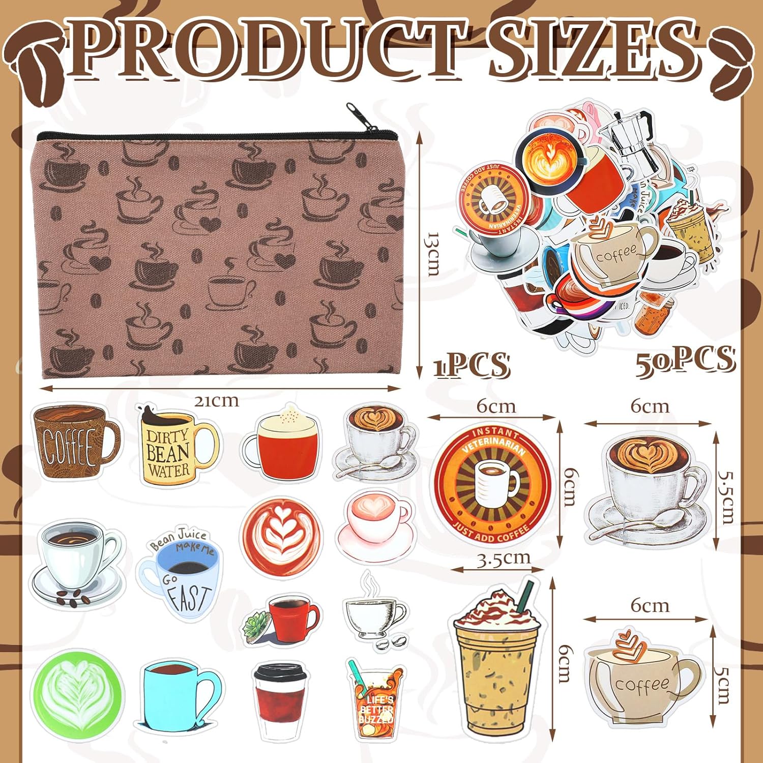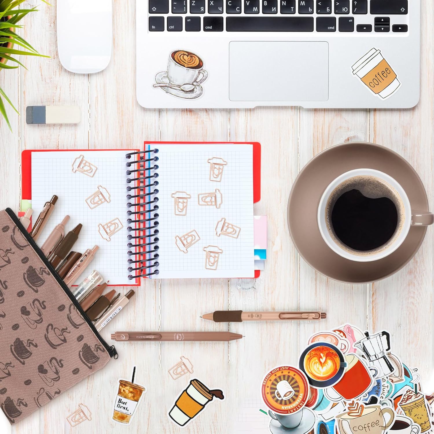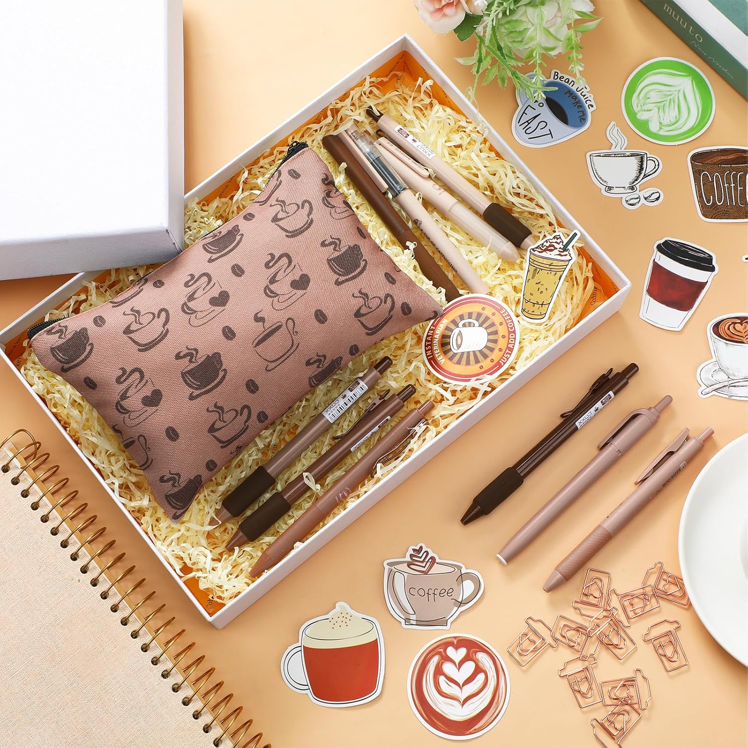 71 Pcs Coffee Stationery Set Cute Aesthetic Stationery Set with Coffee Theme Pens Paper Clips Pencil Case for Office School Coffee Gifts