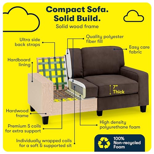 Serta Palisades 78" Track Arm Sofa, Easy Care Polyester, Soft Pillow Back, Pocket Coil Seat Cushions, Removable Covers, Loveseat or Couch for Small Spaces, Living Rooms or Bedrooms, Cream White