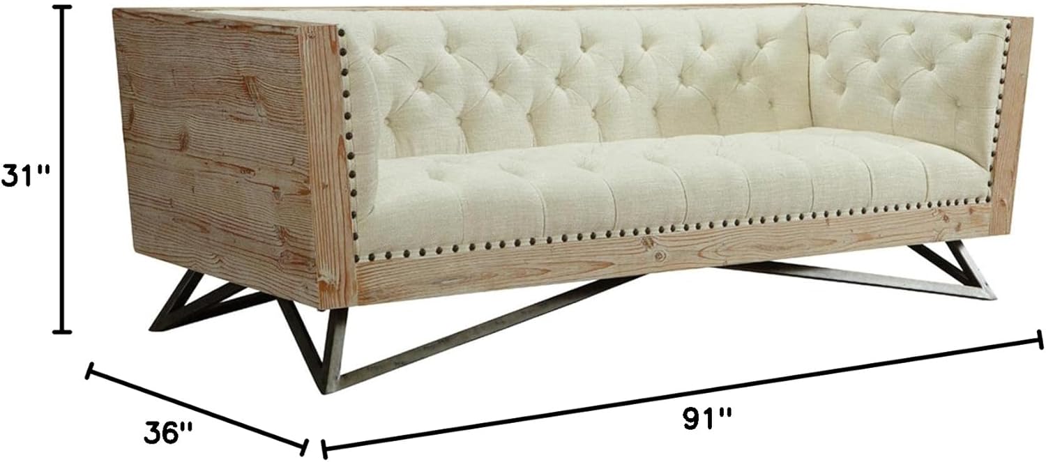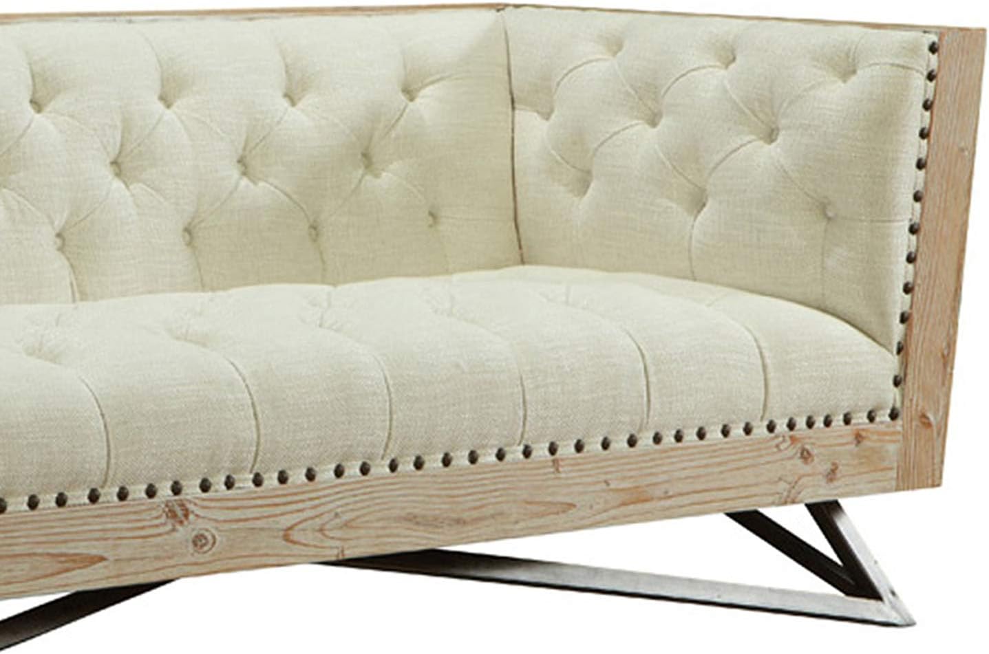 Armen Living Regis Sofa in Cream and Gunmetal Finish