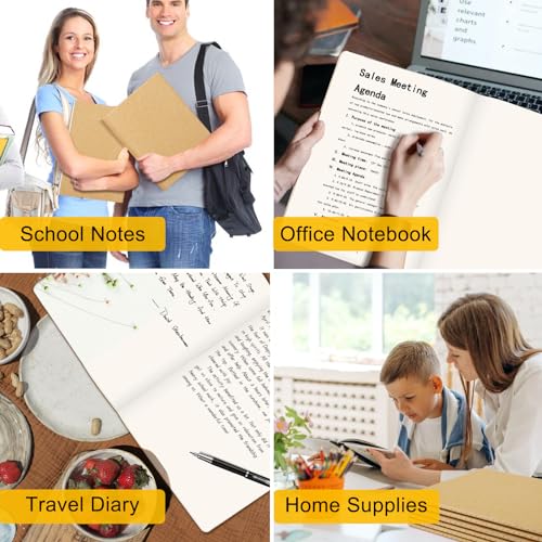 EUSOAR Kraft Notebooks, 12 Packs Large A4 8.5" x 11", 40 Sheets/ 80 Pages Journals in Bulk for Writing, Blank Paper Sketchbooks Composition Travel Journal Notebook Set, for Students and Office