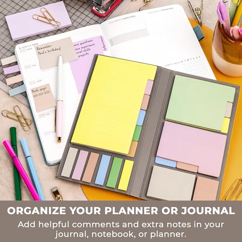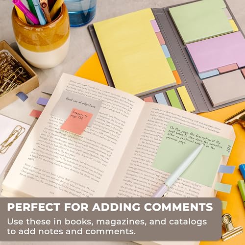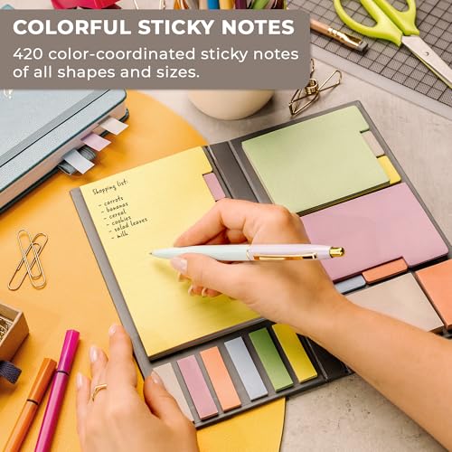 Clever Fox Sticky Note Set – 420 Lined Notes, Tabs & Bookmarks for Books & Notebooks – Office Desk Accessories & Supplies (Orange & Yellow)