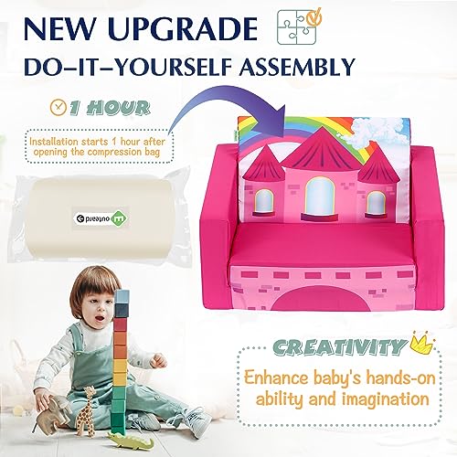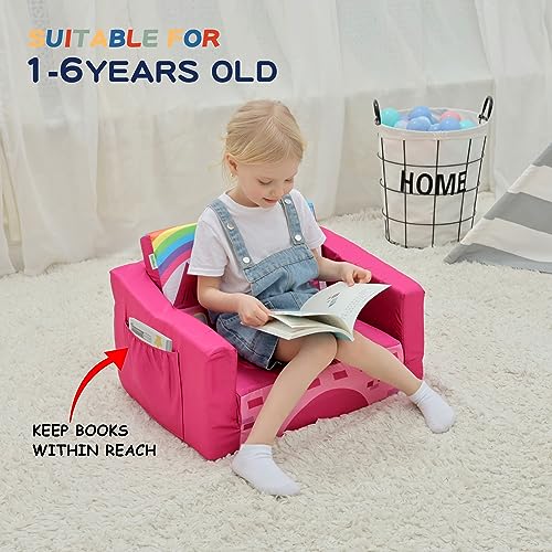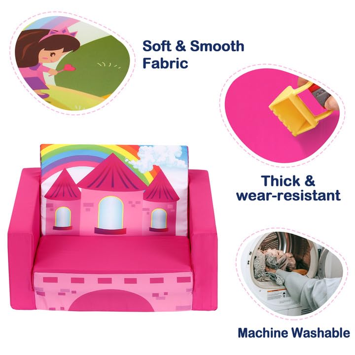 MallBest Kids Sofas Children's Sofa Bed Baby's Upholstered Couch Sleepover Chair Flipout Open Recliner(Orange/Bee)