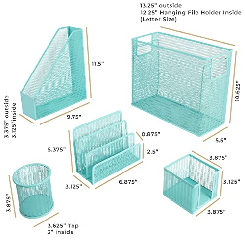 BLU MONACO 5 Piece Office Supplies Pink Desk Organizer Set - with Desktop Hanging File Organizer, Magazine Holder, Pen Cup, Sticky Note Holder, Letter sorter - Pink Desk Accessories for Women Office