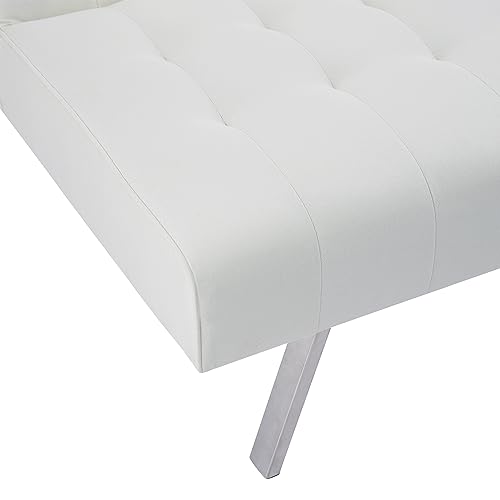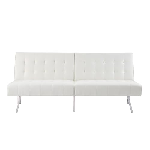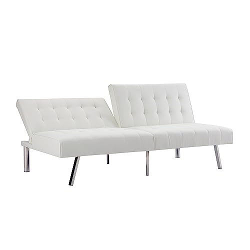 Naomi Home Tufted Split Back Futon Sofa Bed, Faux Leather Couch Bed, Futon Convertible Sofa Bed with Chrome Legs, Folding, Reclining Small Convertible Couch, Futon Couches for Living Room Cream