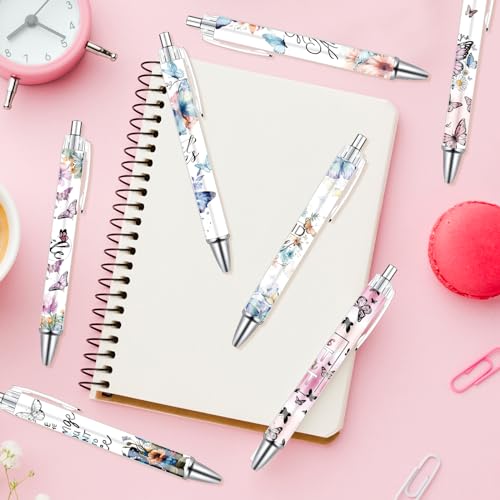 Black Cat Ballpoint Pens - 24PCS Cute Potted Plants Print Pen Set Flower Cactus Ball Point Pens Retractable Smooth Writing Pens for Office Stationery School Supplies for Women Teacher Gifts