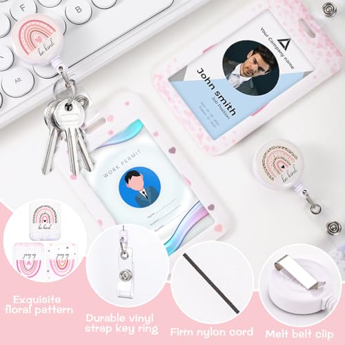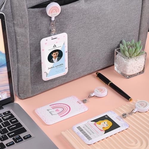 3 Set Rainbow Badge Holder with Retractable Reel, Retractable ID Badge Holders with Clip Name Key Card Holder Case for Nurse Doctor Teacher Office School