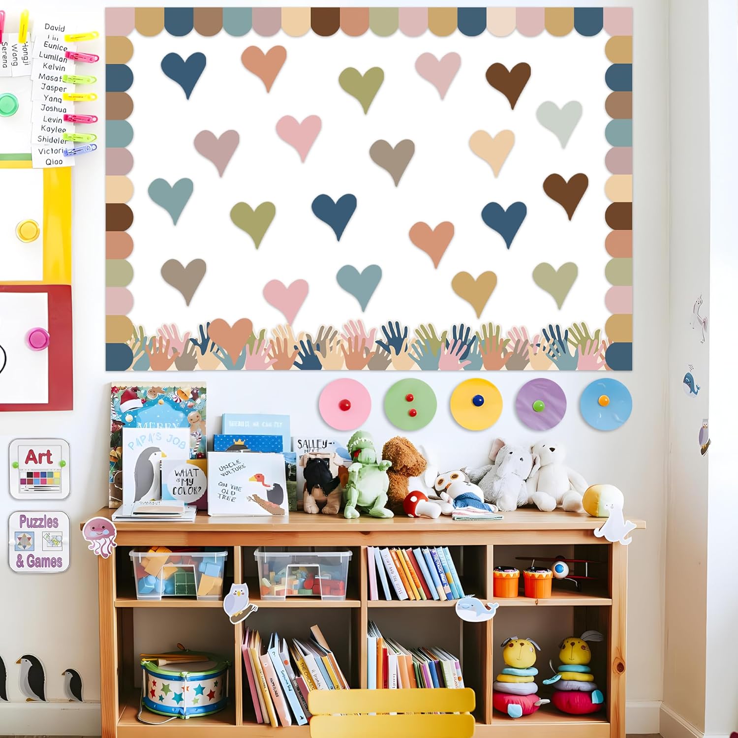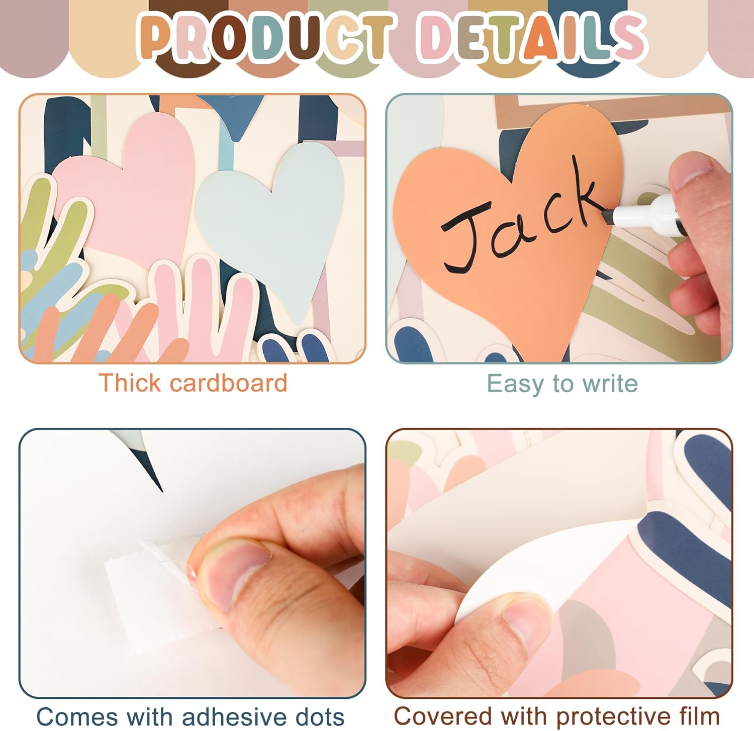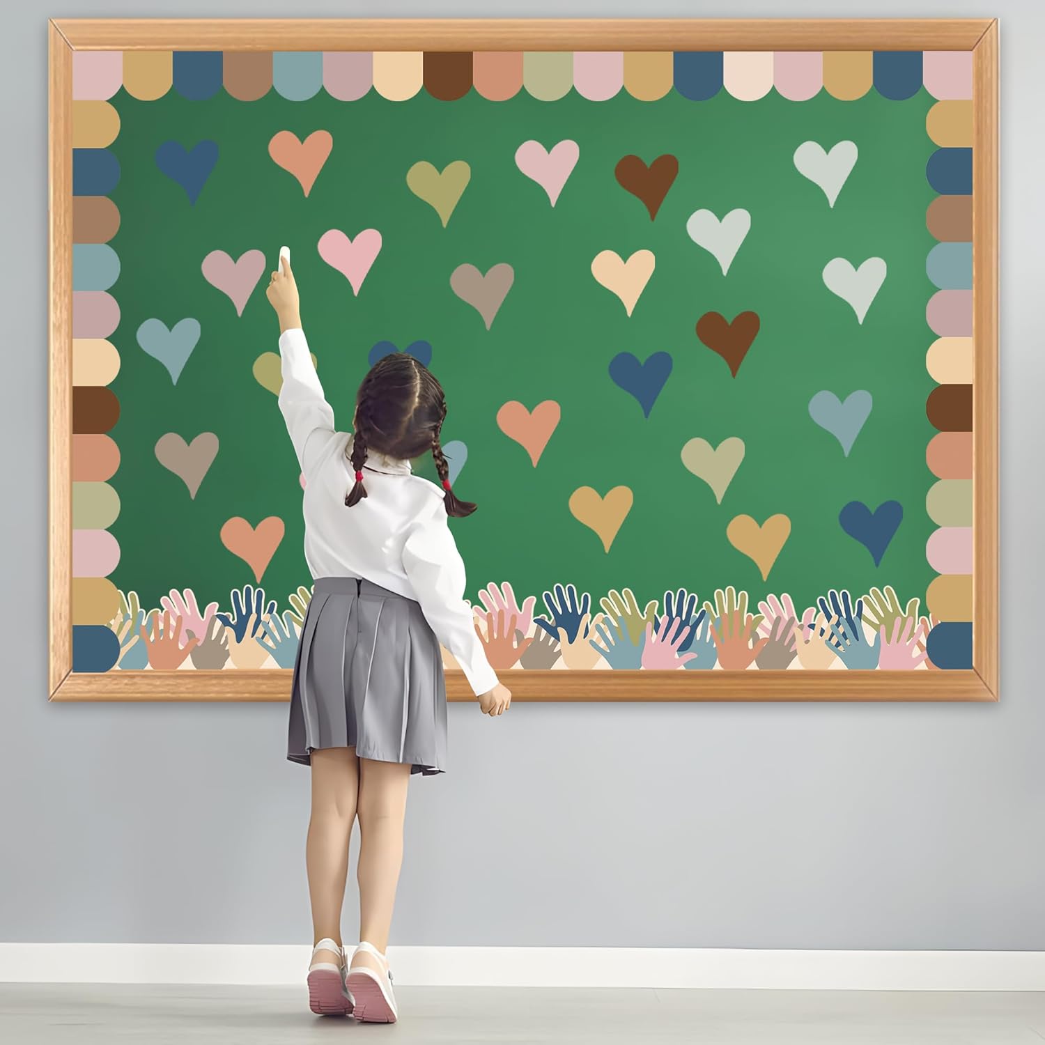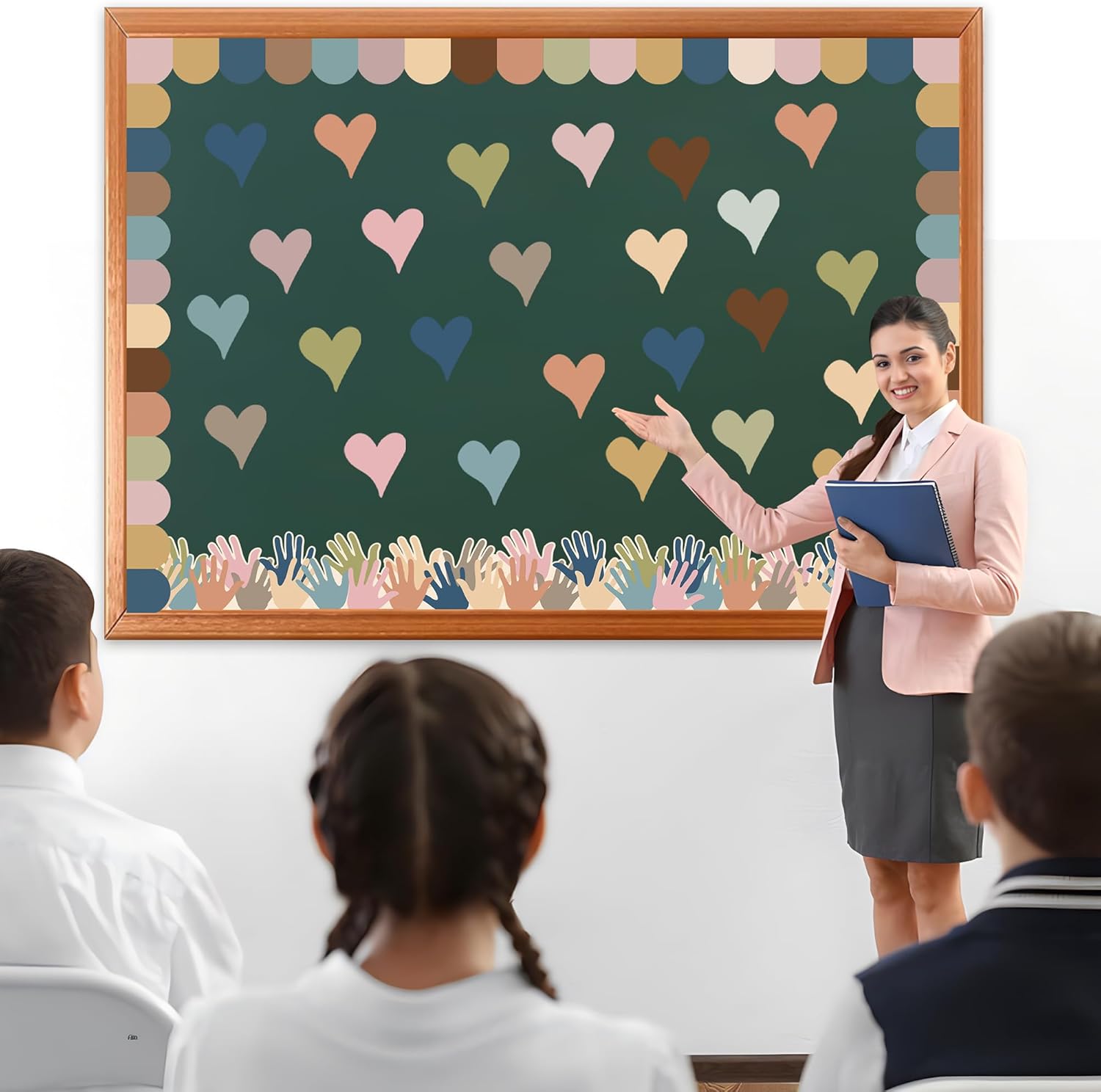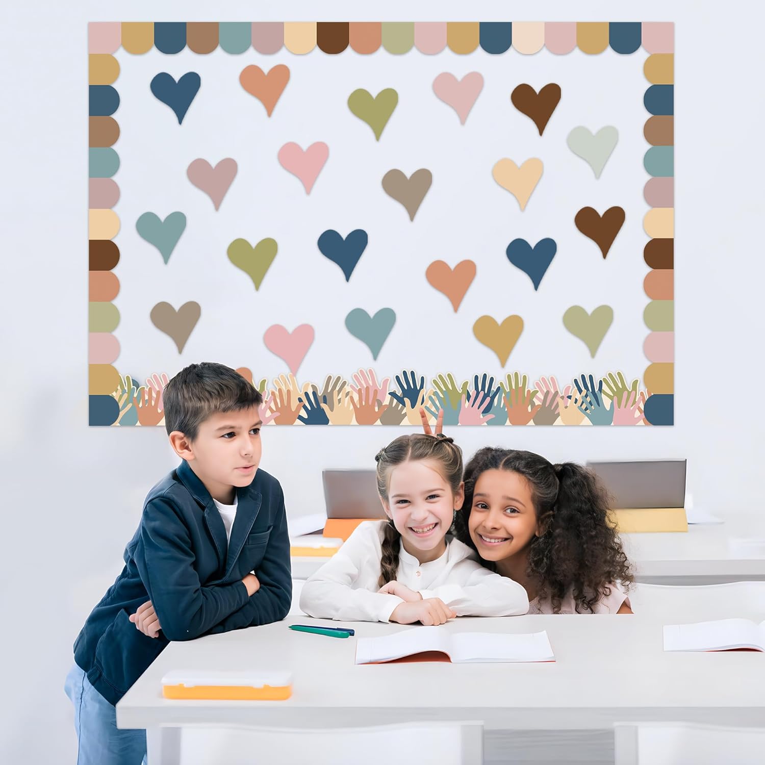 Boho Heart Bulletin Decor Classroom Bulletin Board Decoration Set Heart Hand Paper Cutouts for Classroom Office Home Wall Party Supplies, 52 Pcs