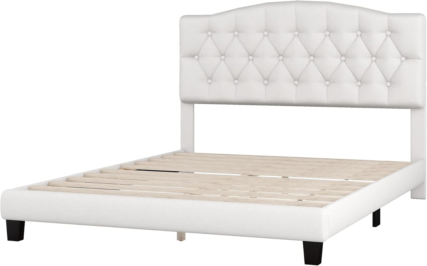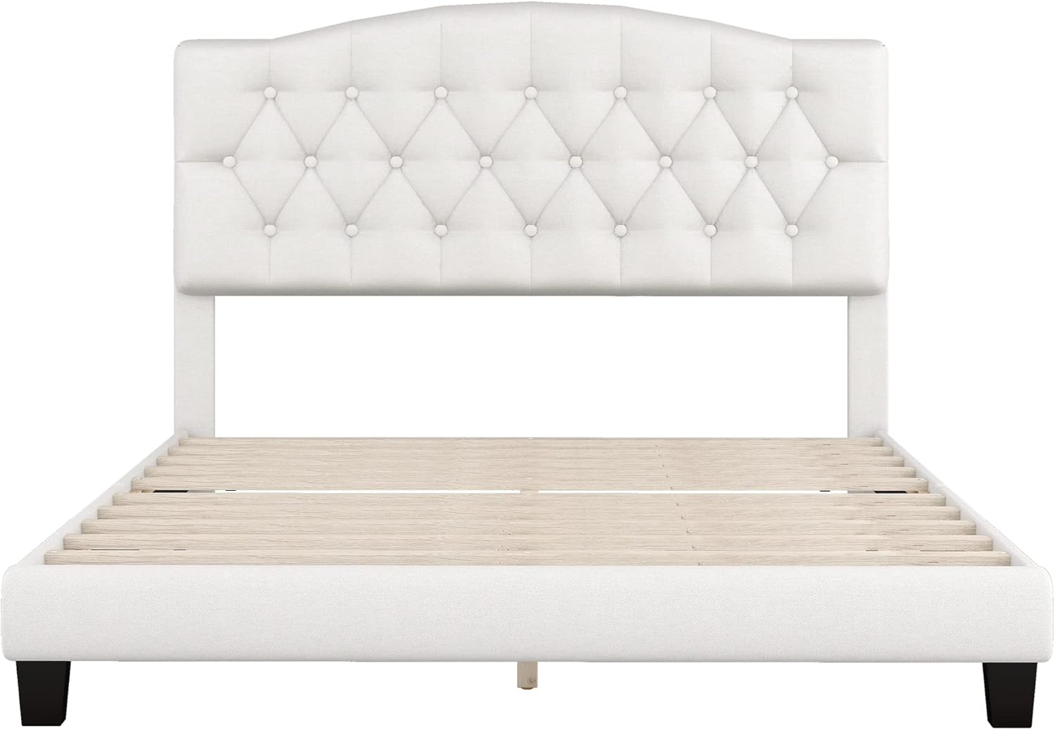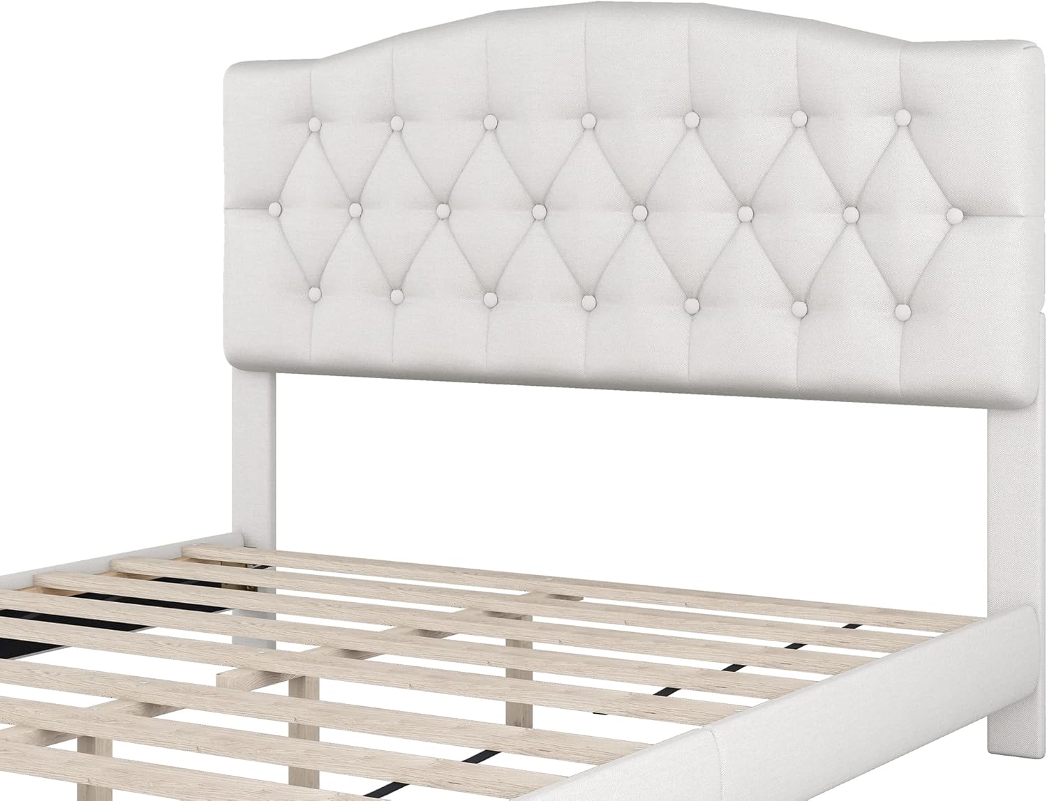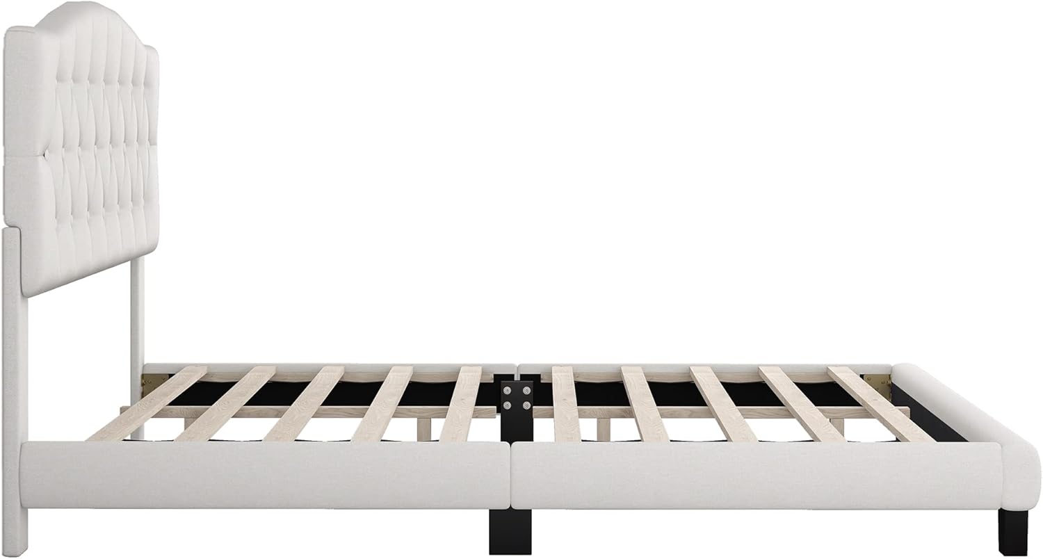 Harper & Bright Designs Queen Size Upholstered Platform Bed with Headboard and Diamond Tufted Details, Linen Mattress Foundation with Wooden Slats Support, No Box Spring Needed (Beige)