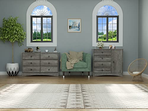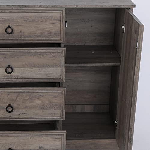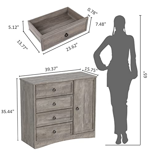 Modern 4 Drawer Dresser Adjustable Shelves, Tall Chest of Closet Organizers and Storage for Clothes - Easy Pulls, Textured Borders for Bedroom, Hallway, Living Room, Office, Gray