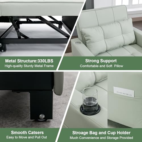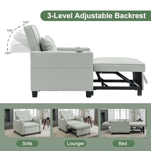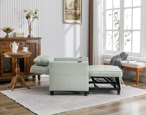 Sleeper Chair Bed, Modern 3 in 1 Convertible Chair Bed, Pull Out Sleeper Chair with USB/Type C Ports and Cup Holder, Wear-Resistant and Anti-Scratch Chair Bed Sleeper for Adults, Living Room-Orange