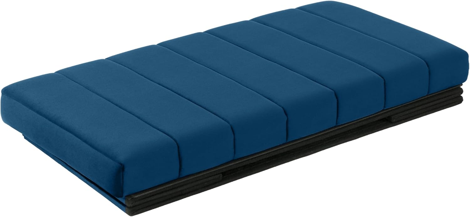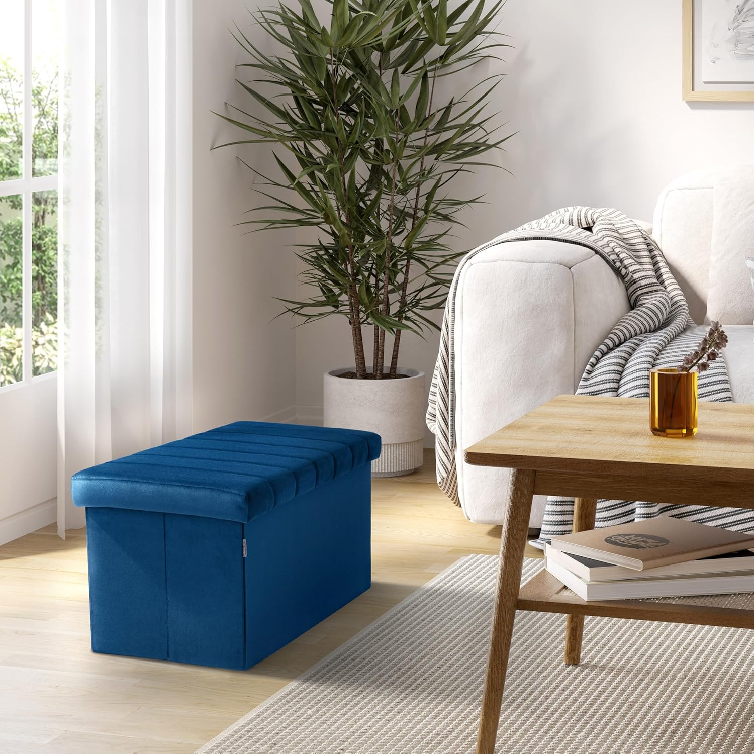 Seville Classics Cushioned Fabric Ottoman Hidden Storage Chest Footrest Chair, Padded Seat for Bedroom, Dorm, Loft, Living Room, Entryway, Hallway, Blue Velvet, 30" Bench
