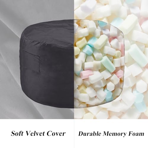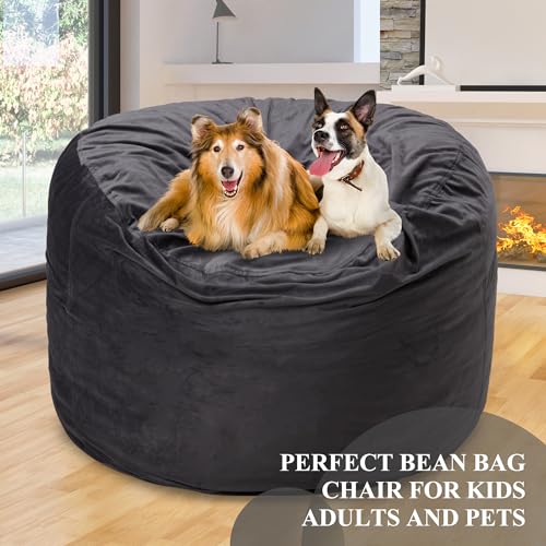 3FT Bean Bag Chairs for Adults with Filling,Big BeanBag Chair with Pocket&Handle,Memory Foam Bean Bags with Velvet Cover for Living Room Bedroom (Black)