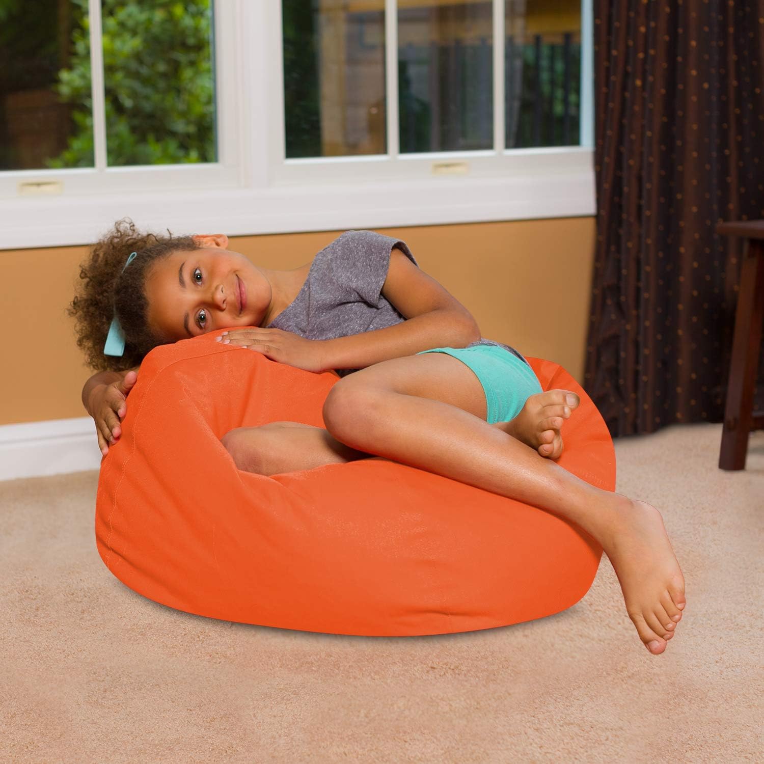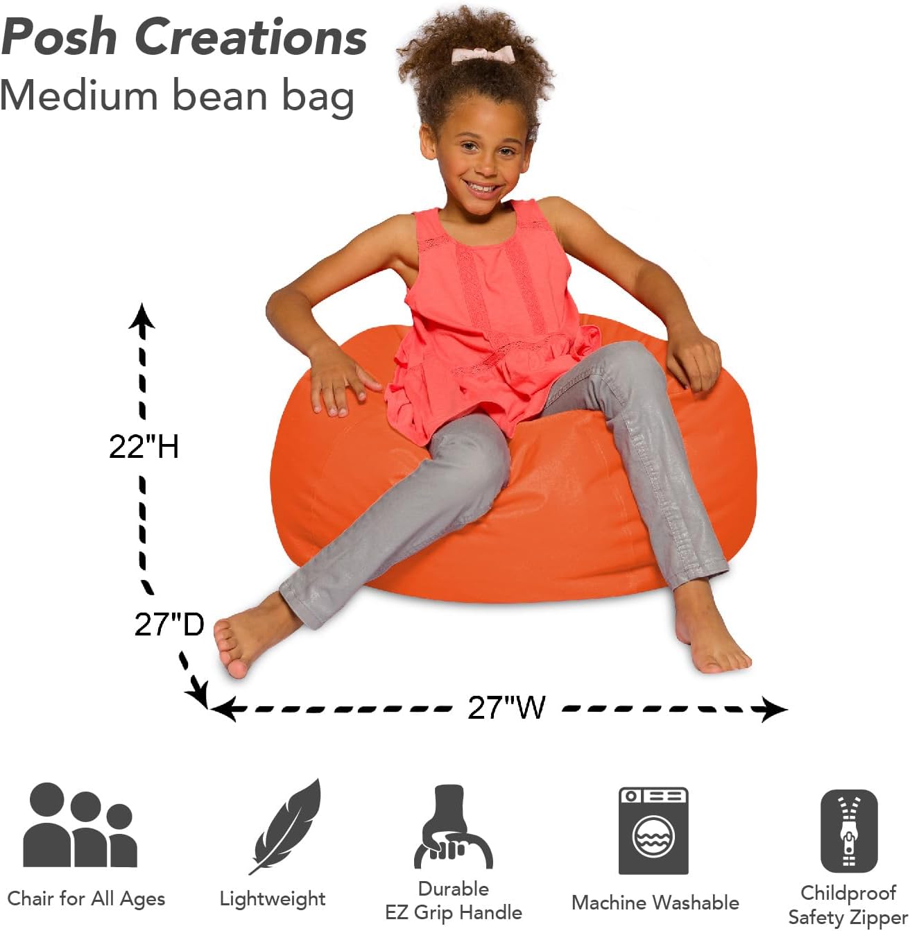 Posh Creations Bean Bag Chair for Kids, Teens, and Adults Includes Removable and Machine Washable Cover, 27in - Medium, Solid Orange