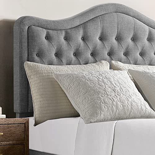 Rosevera Grayson Adjustable Headboard Bed with Fine Polyester and Button Tufting for Bedroom, Queen, Shadow