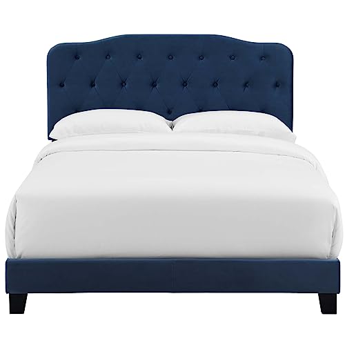 Modway Amelia Tufted Performance Velvet Upholstered Queen Bed in Sea Blue