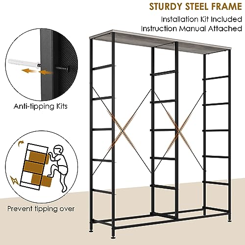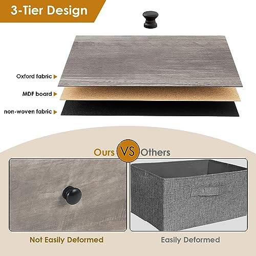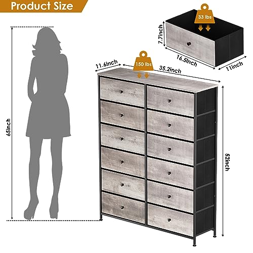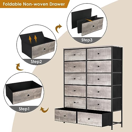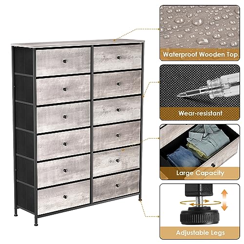 12-Drawer Dresser, 6-Layer Fabric Dresser for Bedroom, Tall Dresser & Chest of Drawers, Storage Organizer Unit w/Fabric Bins, Wood Top, Grey
