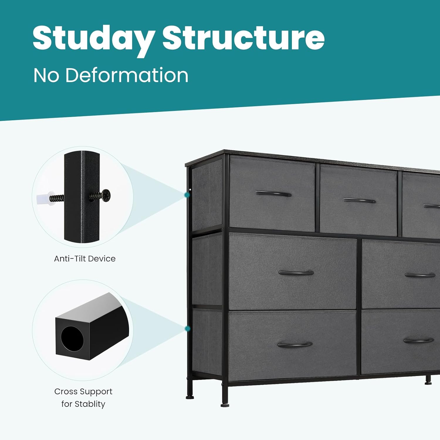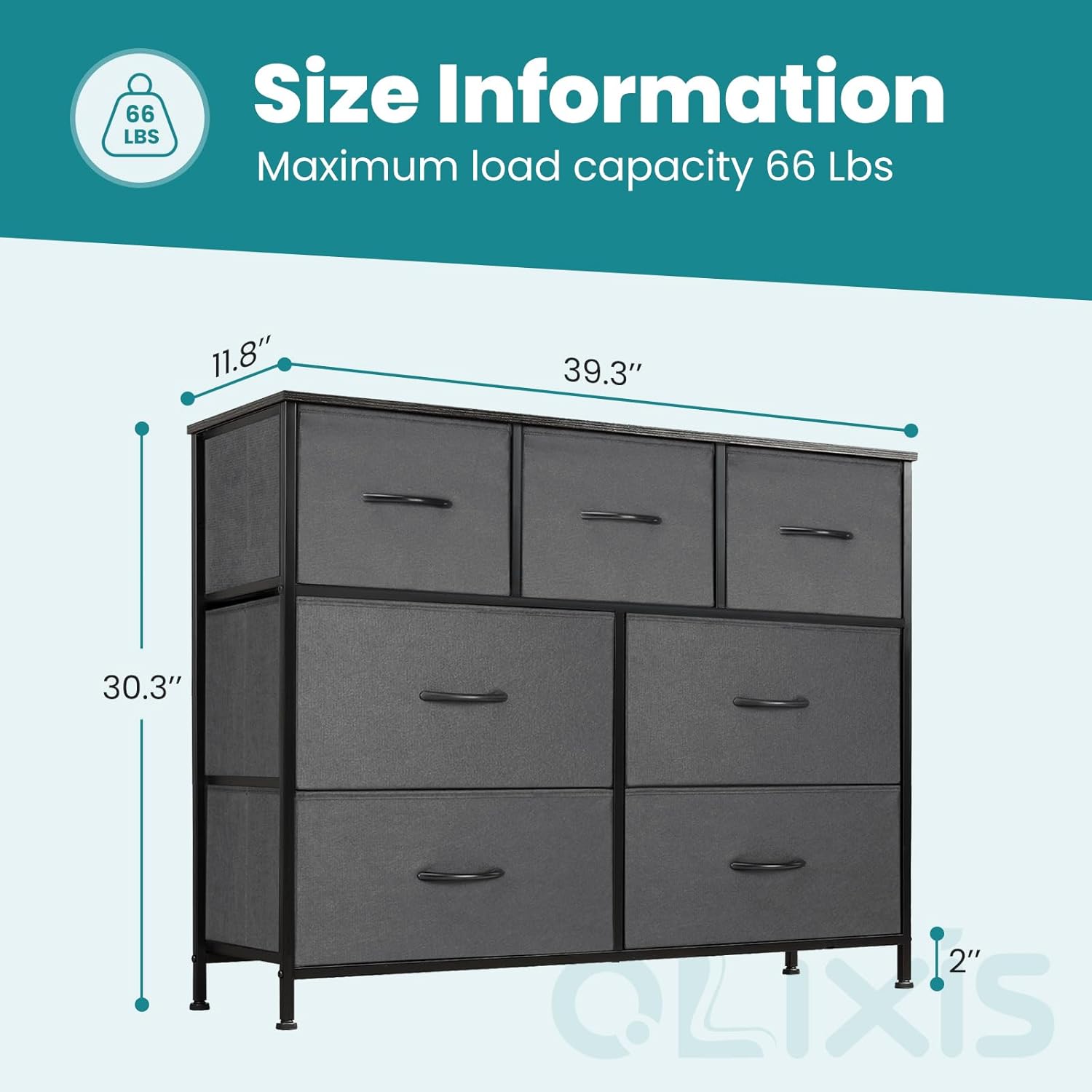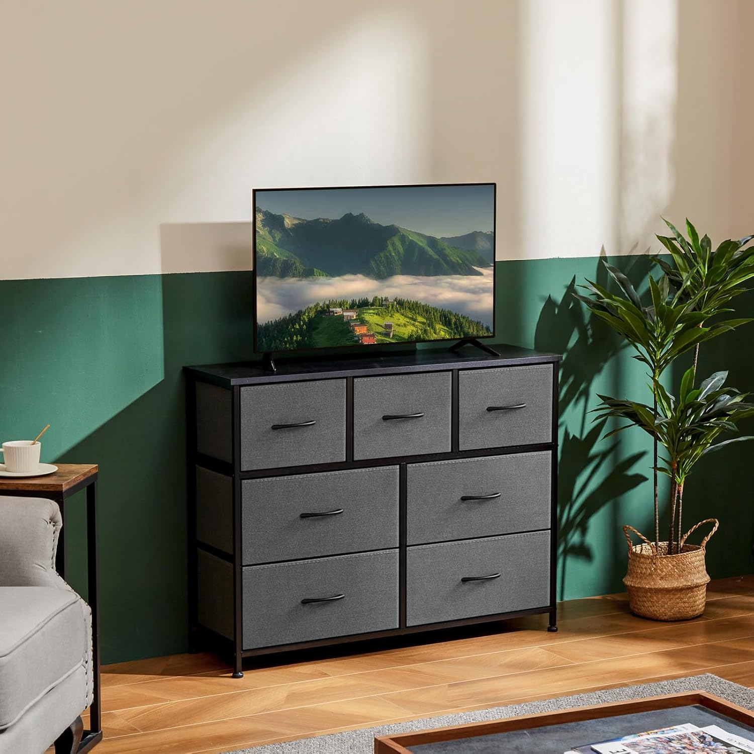 OLIXIS Desser for Bedroom with 7 Fabric Drawers Organizer Storage Closet Chest Clothes Cabinet, Kids Dresser, Grey