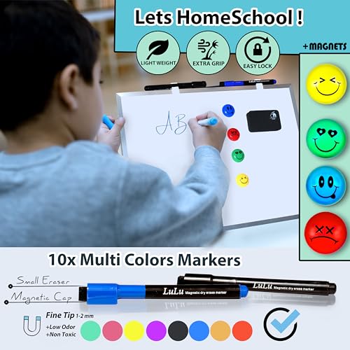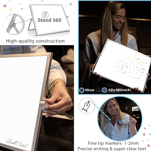 Dry Erase White Board for Kids, 16inX12in Large Magnetic Desktop Whiteboard with Stand Wall Hanger, 10 Markers, 4 Magnets, 1 Eraser, Portable Double-Sided Easel for Kids to Do List Desk Board