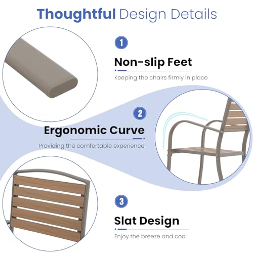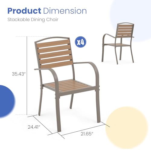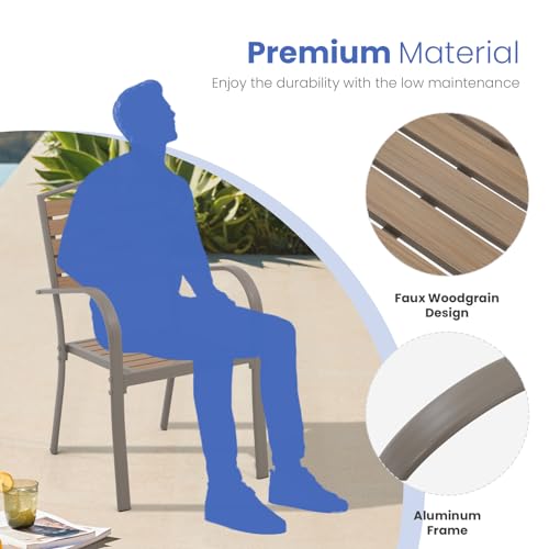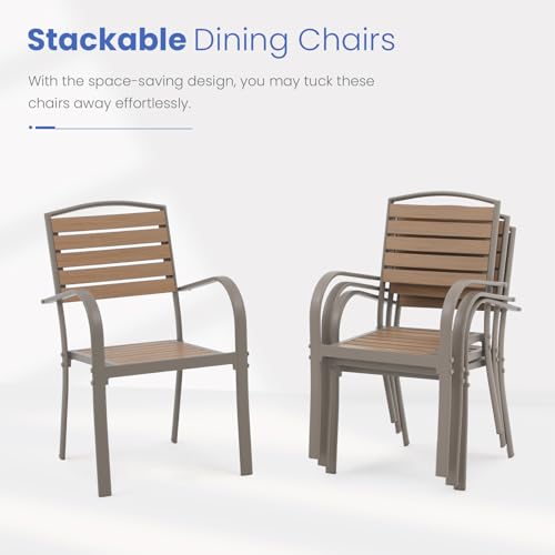 SUNSITT Patio Dining Chairs Set of 4, Aluminum Outdoor Dining Chairs with Faux Wood Slats, All-Weather Stackable Patio Chairs w/Armrests for Lawn, Porch, Garden and Deck, Teak