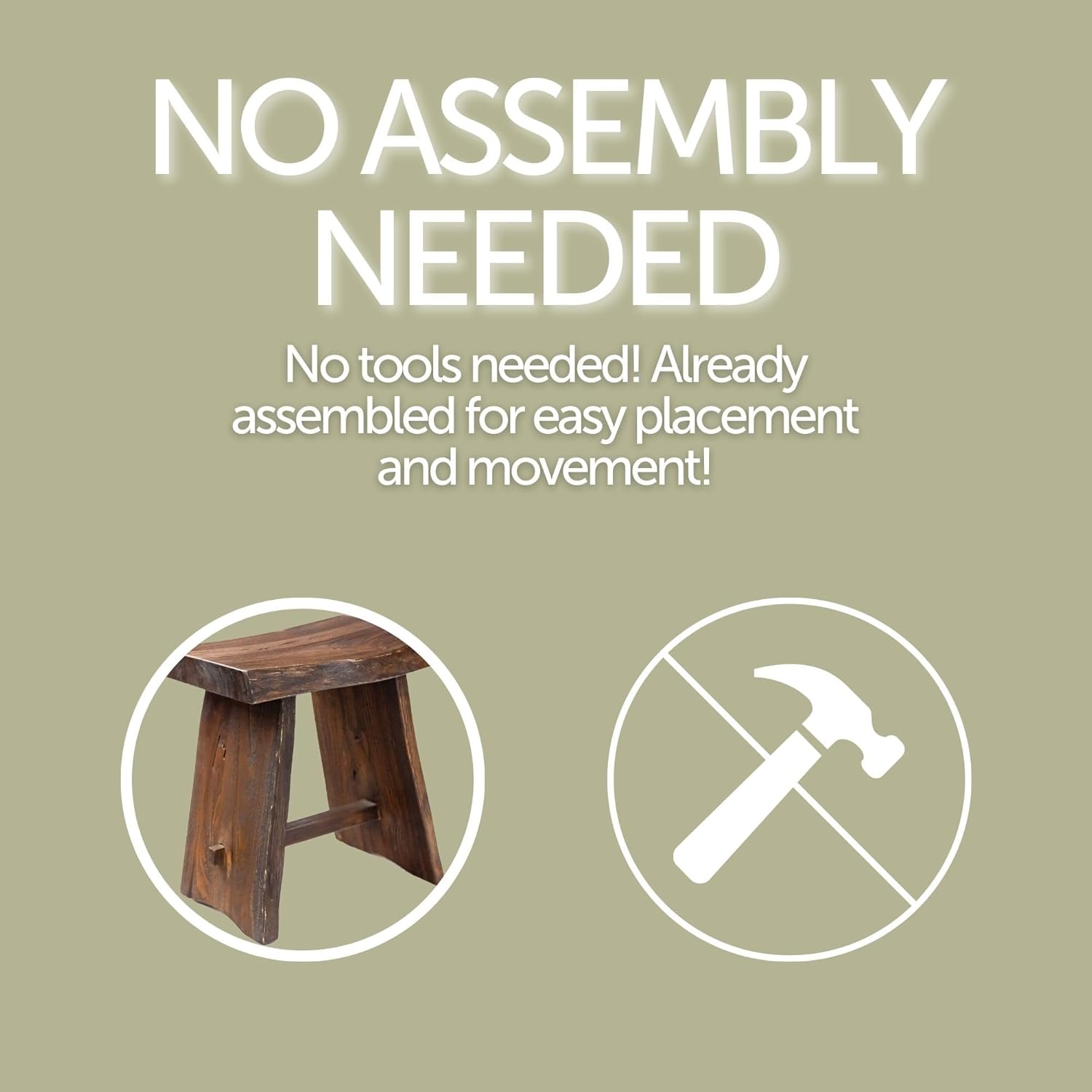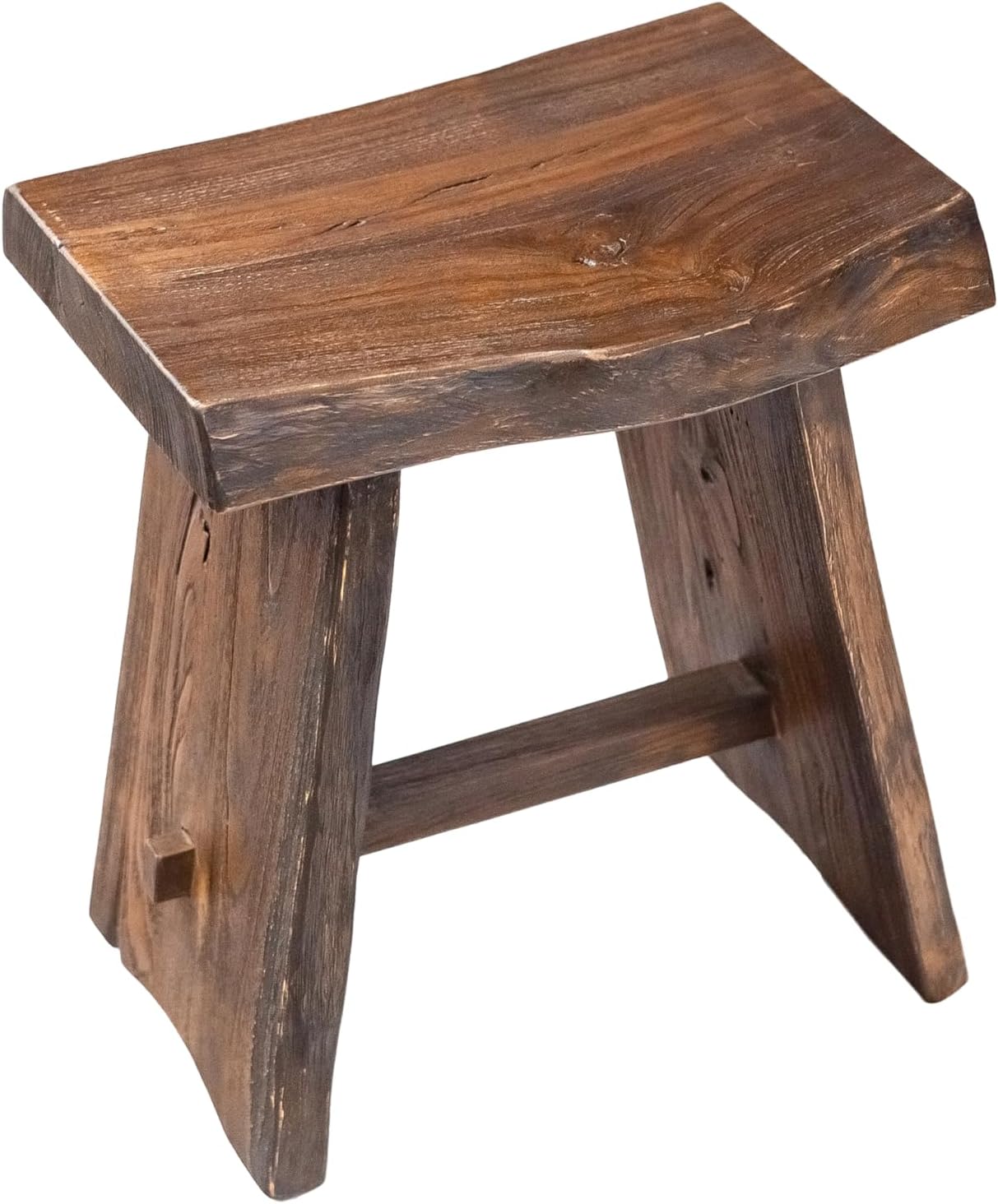 NORDIC STYLE TEAK Shower and Bath Stool, Teak Wood Shower Bench, Indoor and Outdoor Use 17.7" (Rustic Finish w/Curved Seat)