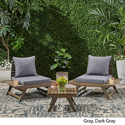 GDFStudio Outdoor 2 Seater Acacia Wood Club Chairs and Side Table Set, and White