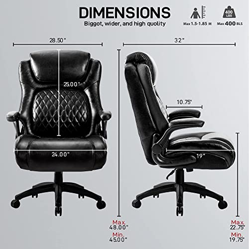 High Back Big & Tall 400lb Office Chair - Heavy Duty Metal Base, Adjustable Tilt Angle Large Bonded Leather Ergonomic Executive Desk Computer Swivel Chairs