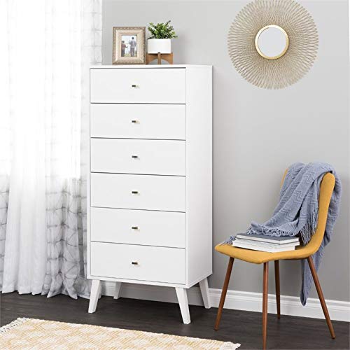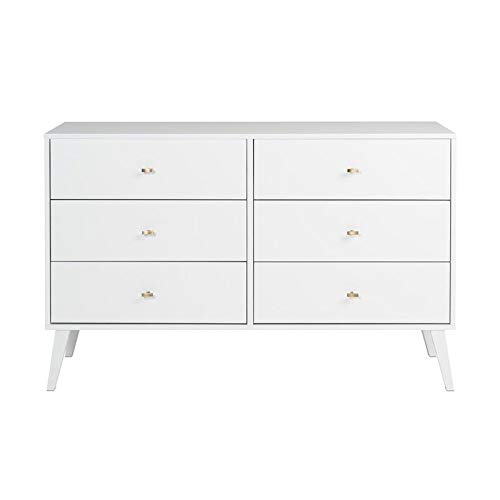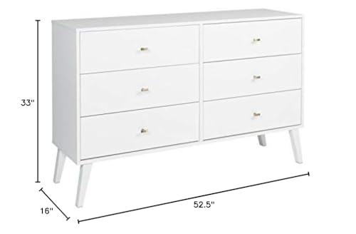 Prepac Milo Mid-Century 6 Drawer Dresser for Bedroom, 16" D x 52.50" W x 33" H, Cherry & Milo 2-Drawer Tall Nightstand with Open Shelf, Cherry