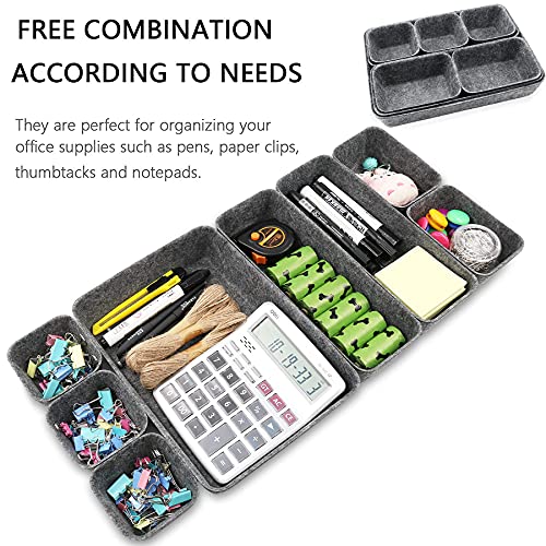 Felt Drawer Organizer Tray, 8 Pack Shallow Desk Drawer Organizer, Save Desk Space Dividers Box for Office Gadgets and Jewelry Storage (Dark Gray)