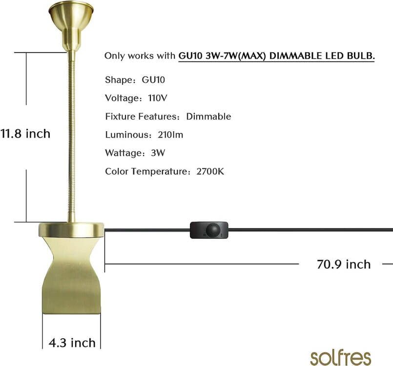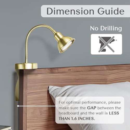 Innovative Design Headboard Reading Light. No Drilling Book Light for Bedtime Reading. Dimmable LED Book Reading Lamp with Bulb. Movable & Flexible, Burlywood